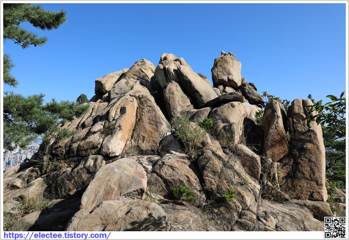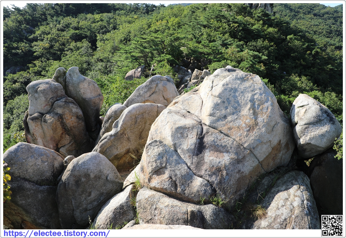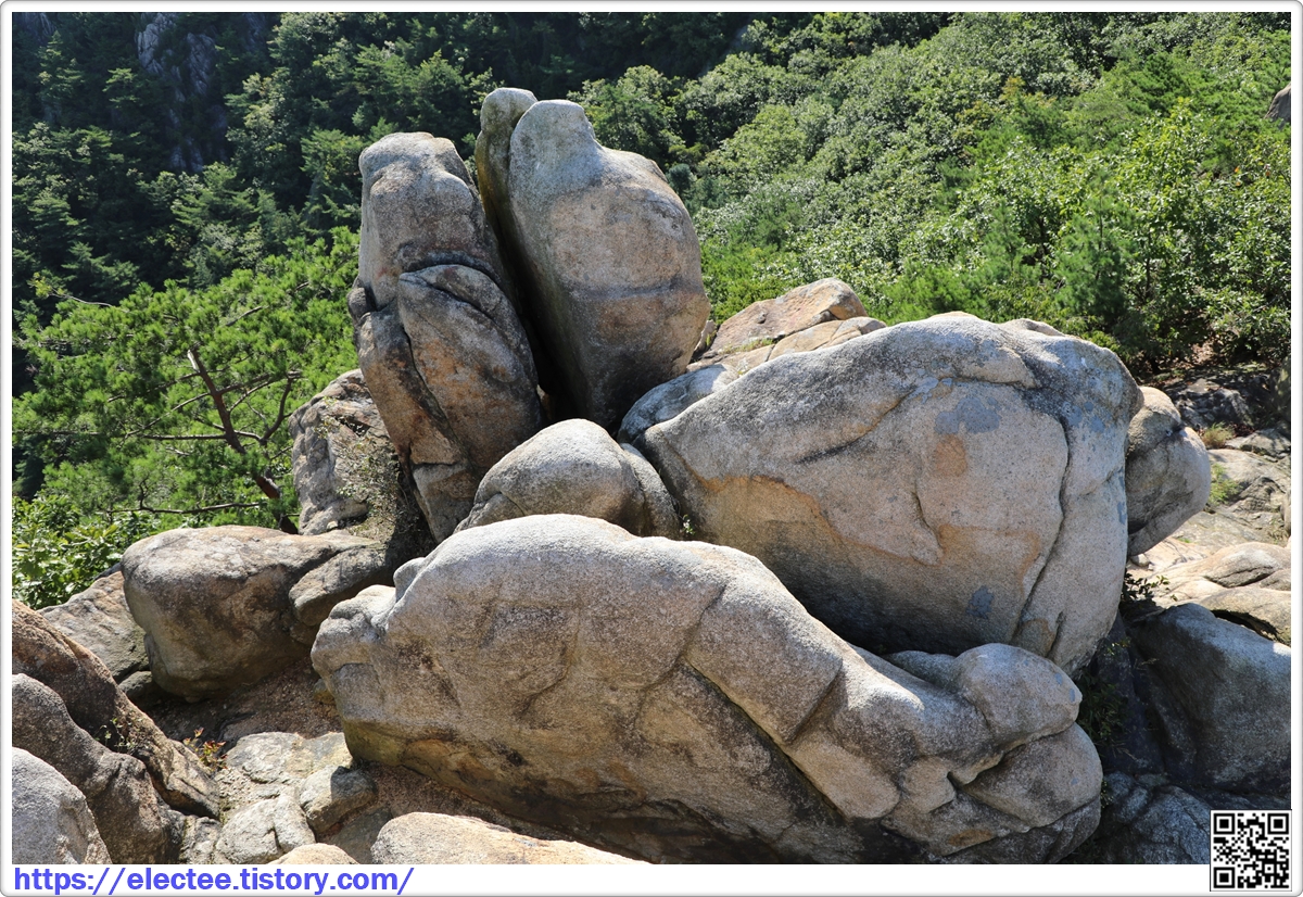 바위 위로 올라가면 여러 형태의 바위가 모여 있다.