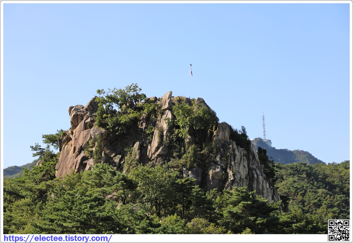 서울대에서 자운암을 타고 올라오면 만나게 되는 자운암 국기봉 바위다.