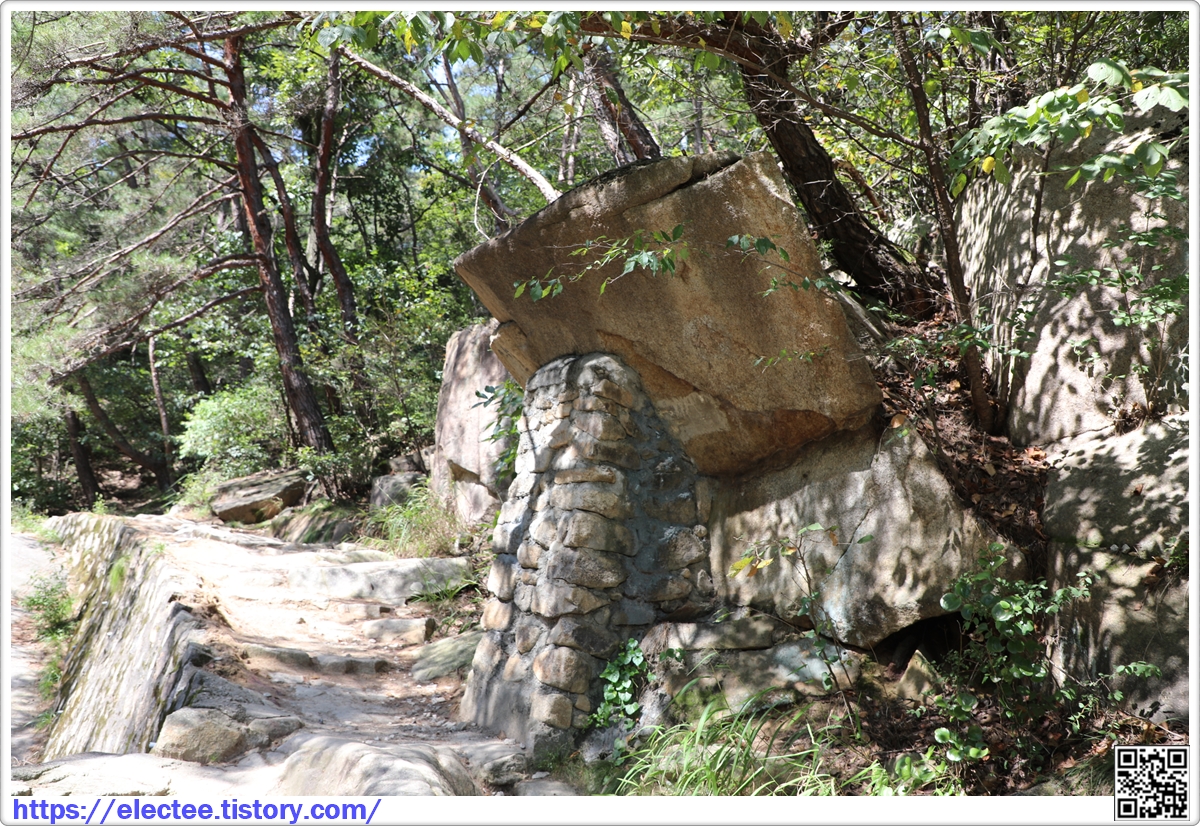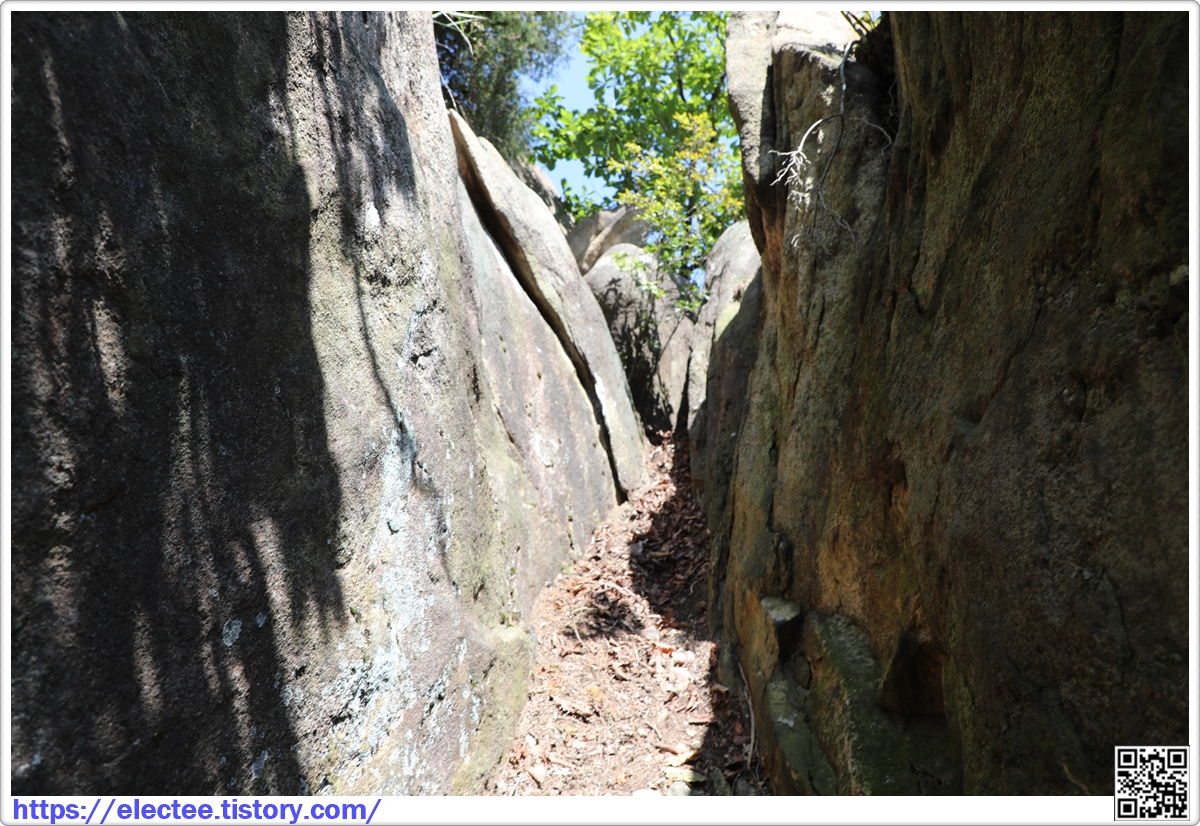 들머리에서 제법 지루하다 싶을 정도로 걸은 뒤에 길에서 40m 비켜난 곳에 있다.