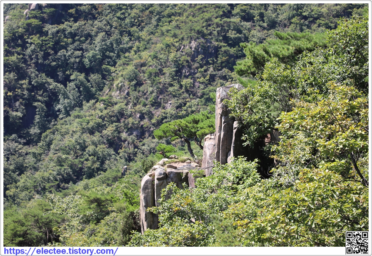이 암봉도 멀리서 보면 독특한 매력이 있다.