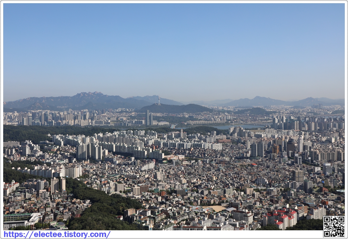 사당동 방향 너머로 북한산이 보인다.