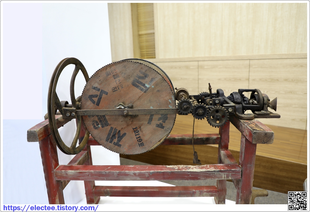 새끼틀과 숯울 넣는 다리미, 풍구, 되가 보인다.