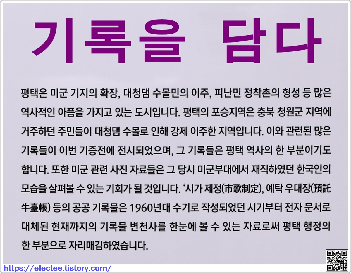 평택시 박물관이 생기면서 유물을 수집한다는 소식을 듣고 유물을 기증하신 분들의 소감을 적은 글이다.