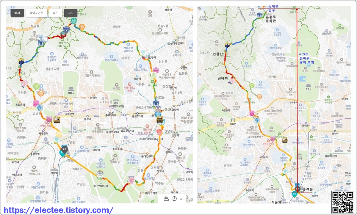 지난번처럼 서울 한양도성 순성은 네 구간으로 나누어 올린다.
