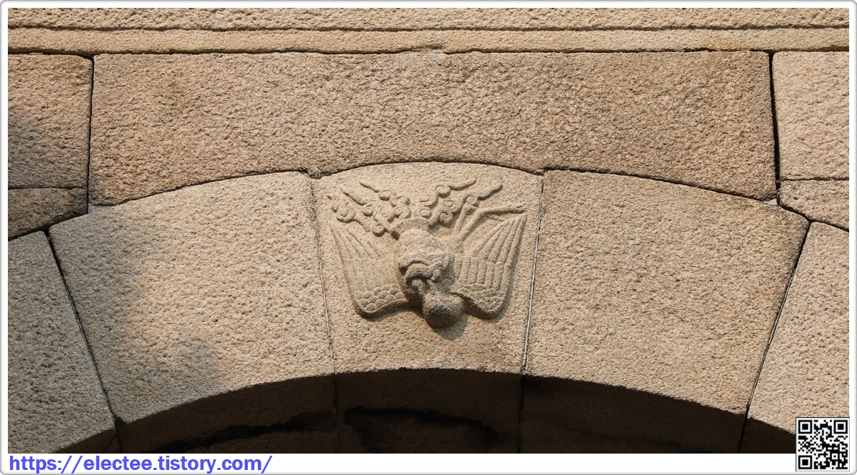 창의문 안쪽에 있는 홍예문 상단에 닭을 조각해 놓았다.