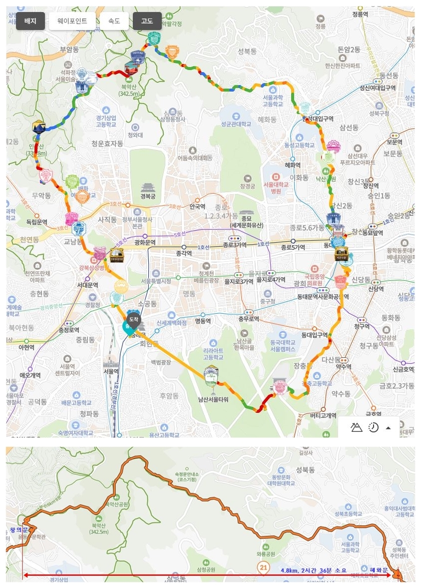 서울 한양도성 순성 코스와 백악산 구간