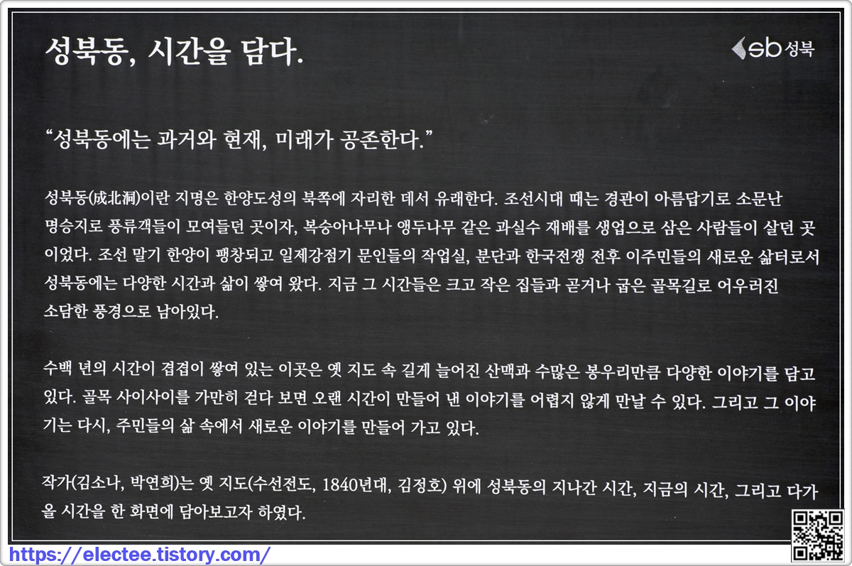 그림은 성북동의 지나간 시간과 다가올 시간을 표현했다는 안내문이다.