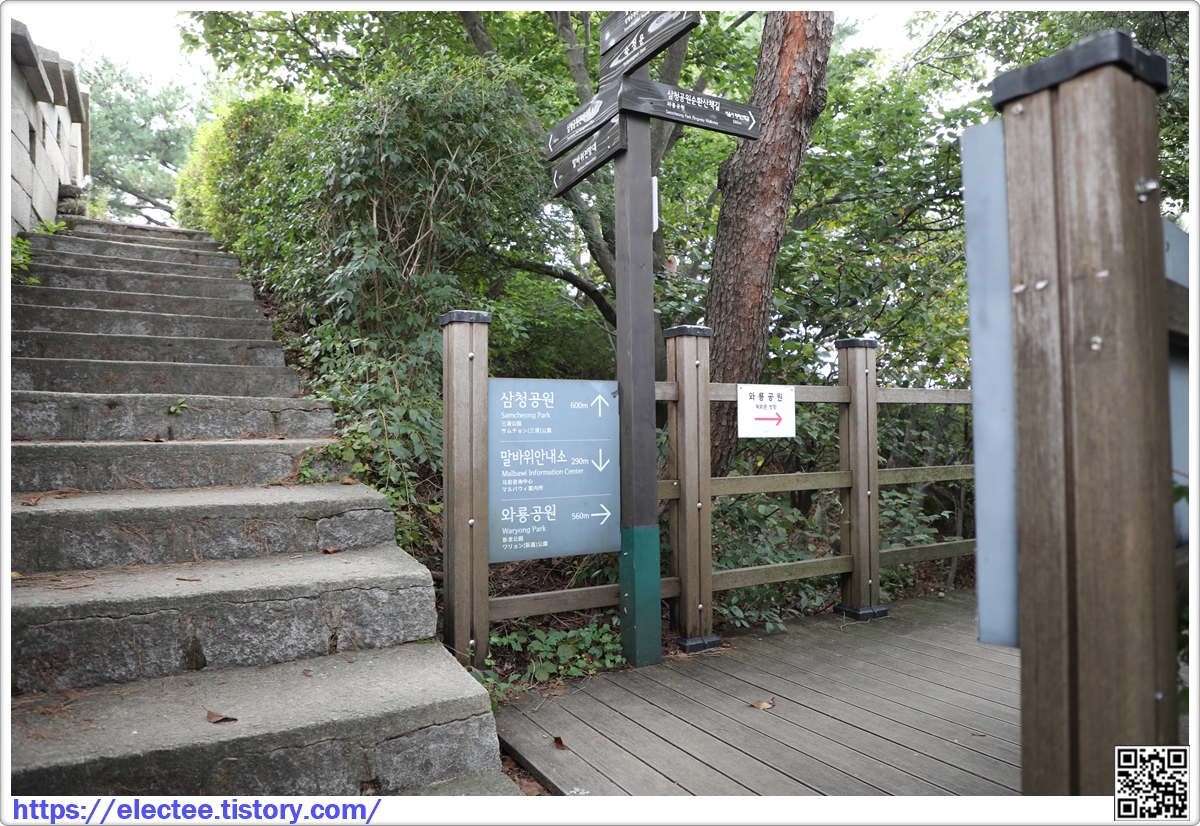 한양도성을 순성 할 때 이 계단을 딸가게 되면 점점 와룡공원과 멀어지게 되어 한양순성을 끝내기 어렵다.