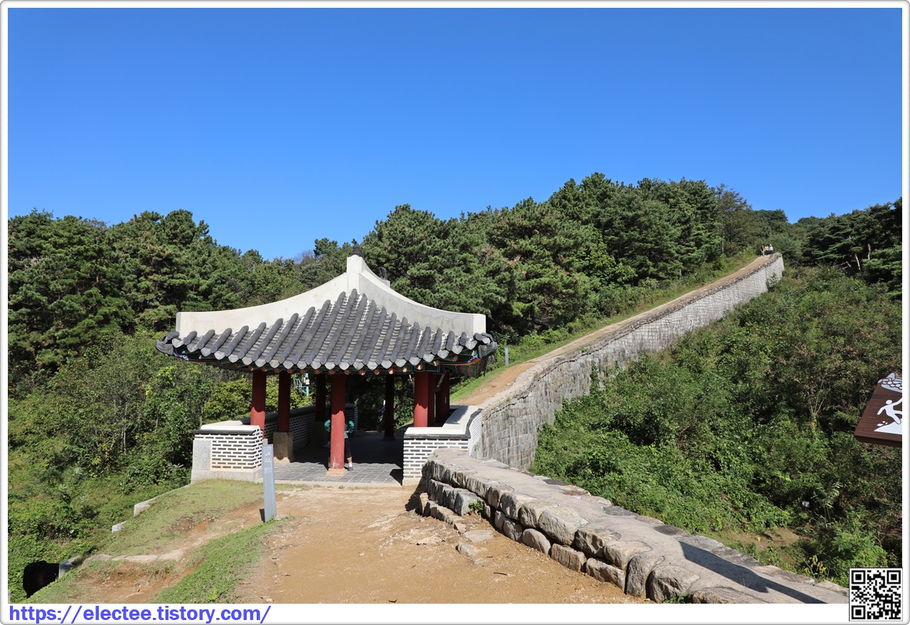 The site of Guard Pavilion No. 1 is quite small, but its level surface and high elevation make it a suitable lookout point. The site was excavated in 2002, revealing the remains of a building and roof tile shards. (안내문)