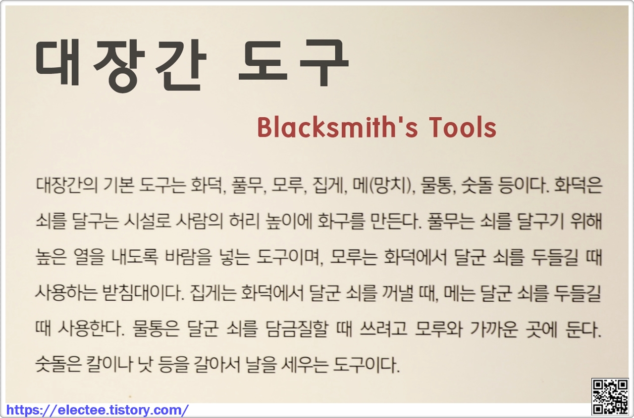안으로 들어가니 대장간의 이해를 높이려고 안내문과 함께 그림 설명까지 붙여 놓았다.