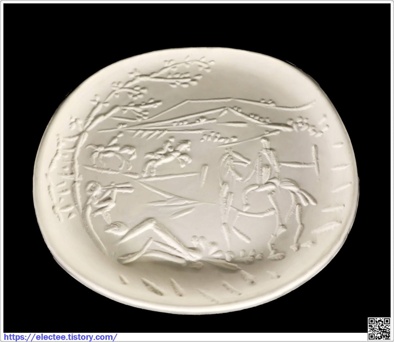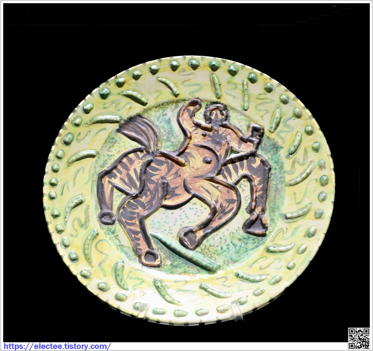 전시에 소개된 4점의 작품은 접시 가운데를 켄타우로스로 배치하고 주변을 구경꾼으로 장식했는데,