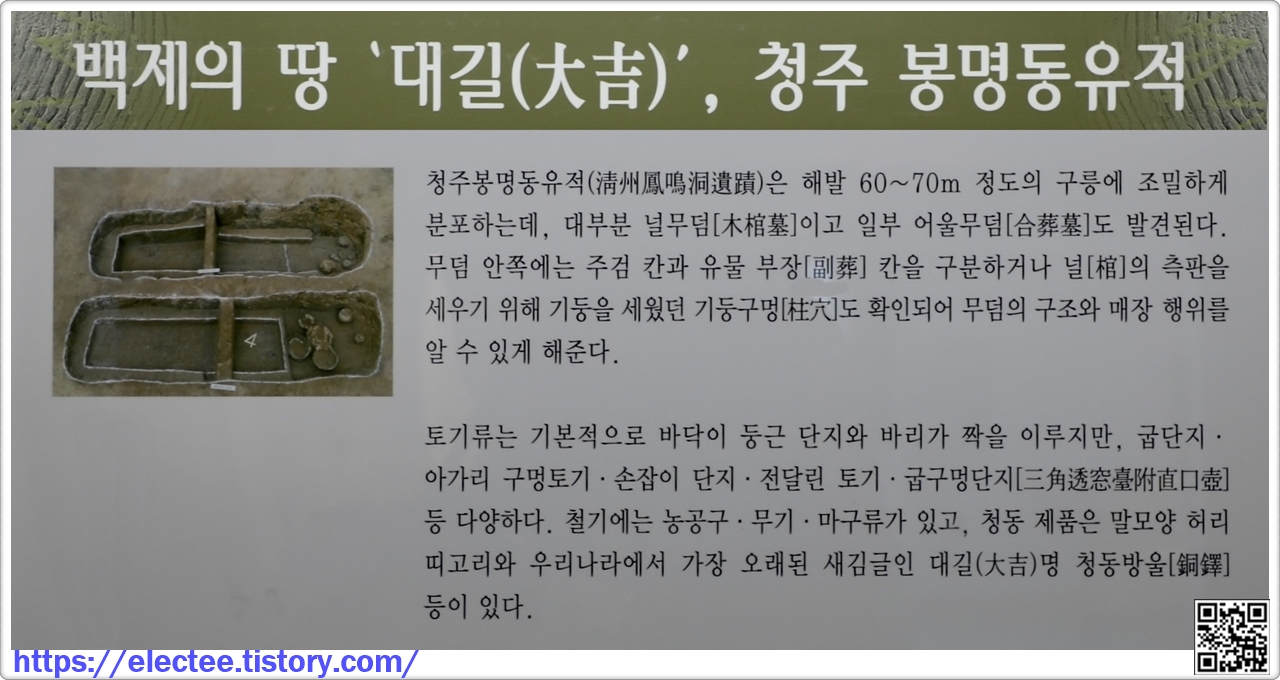 신봉동 움집터, 청원 송대리 무덤, 진천 산수리 가마터 등이 있다.