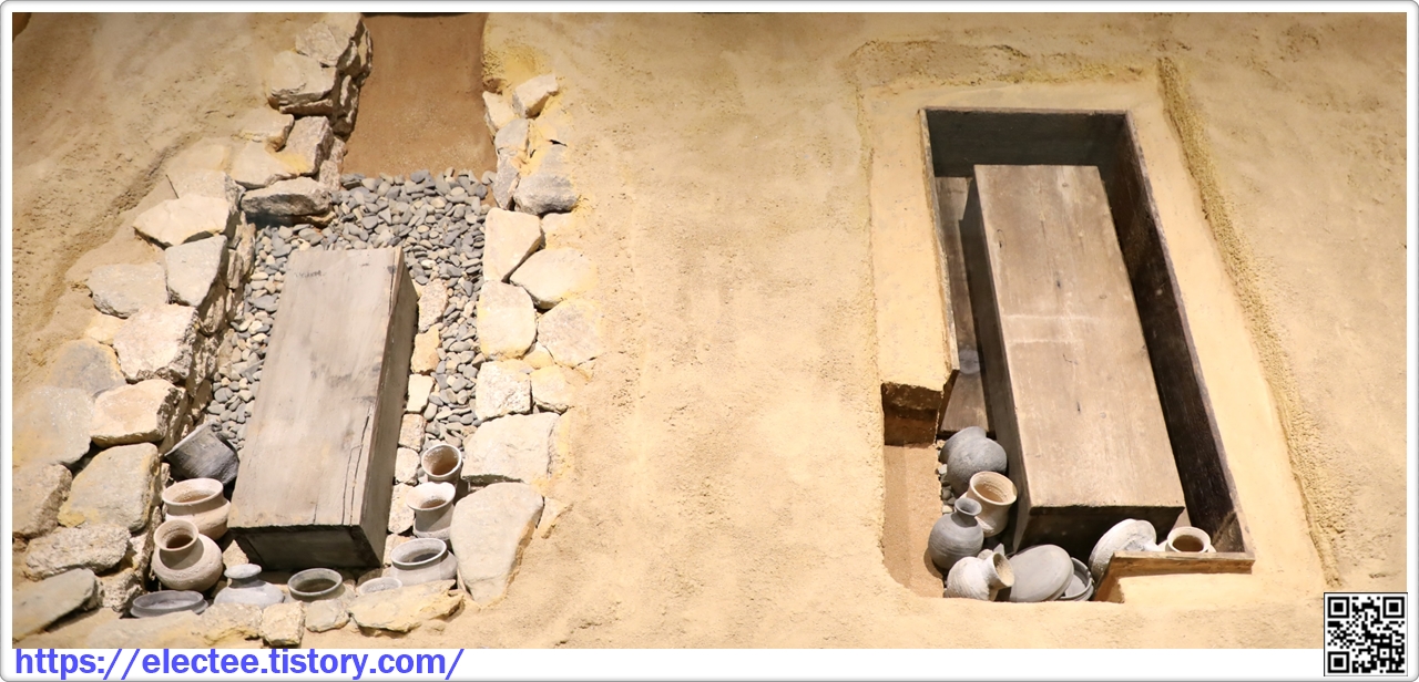 A coffin and an outer coffin were used. The coffins were covered earth. clay or sand. (안내문)