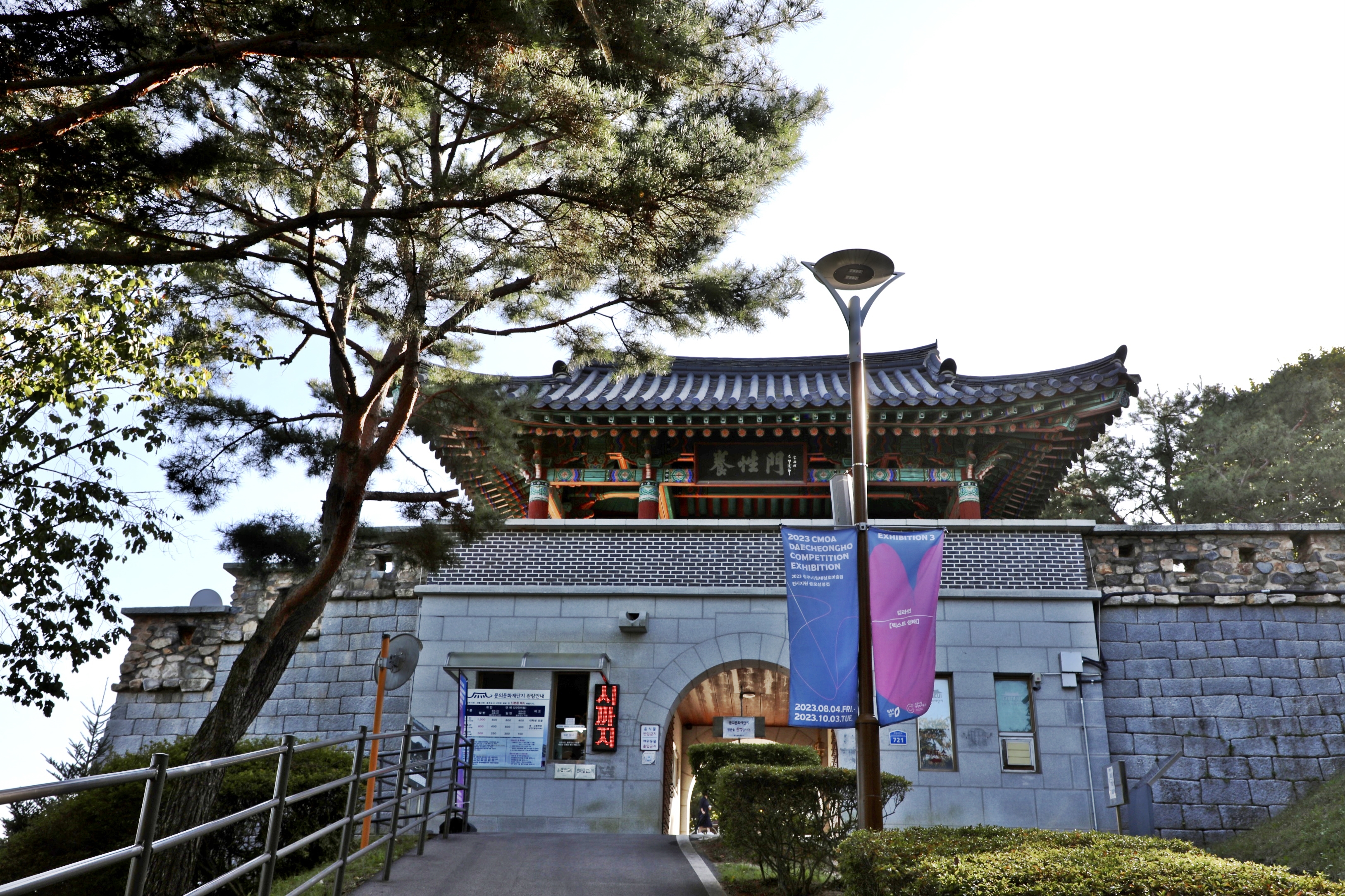 양성산자락에 만든 문의문화재단지는 양성산성이 있기에 담장을 산성처럼 만들었다.