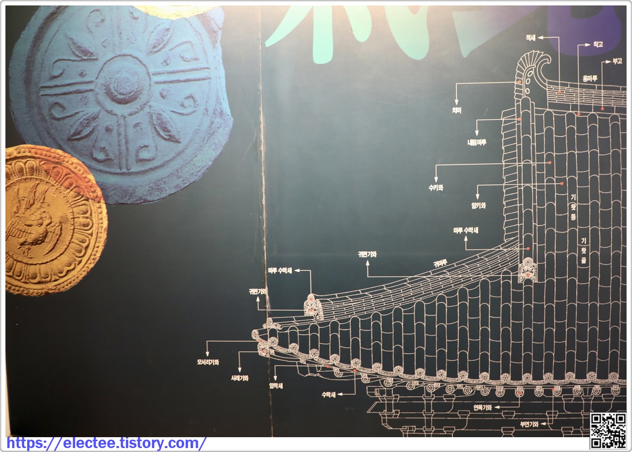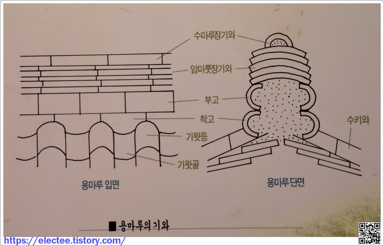 지붕에 사용되는 위치에 따라 모양이나 명칭이 각각 다르고 그 종류도 매우 다양하다 (안내문)