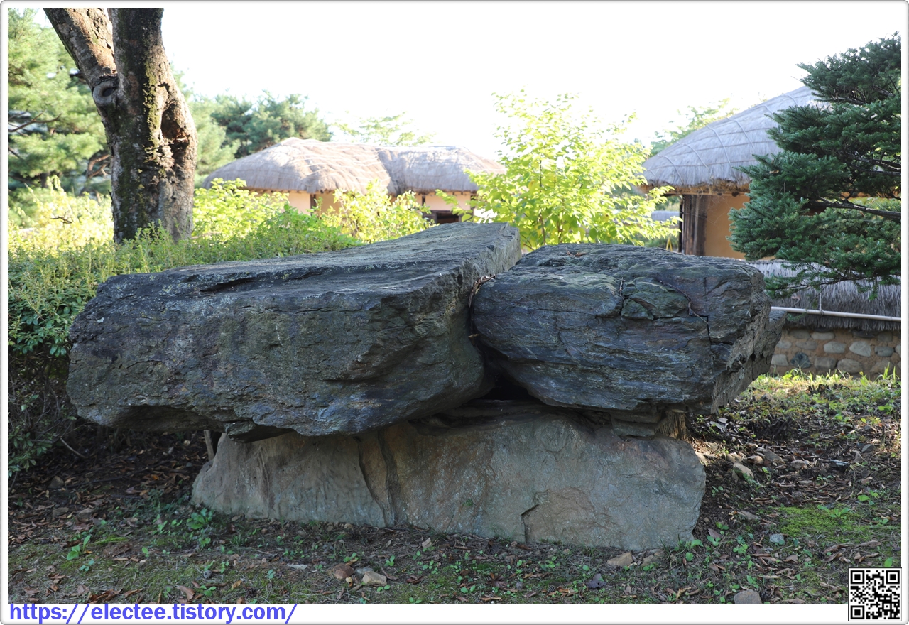 이 큰 뚜껑돌의 무게를 지탱하는 굄돌은 판석형으로 뚜껑들과 같은 돌이다.