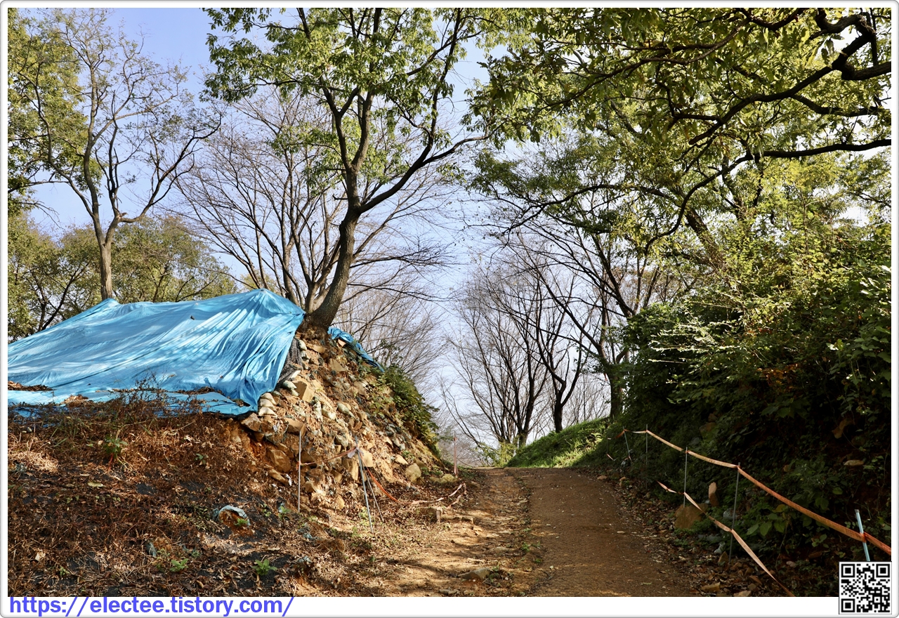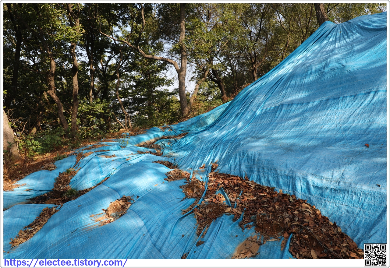 앞서 올라올 때 본 산성 절단면은 이렇게 천막으로 포장된 걸 보면 발굴조사가 있었던 것으로 보인다.