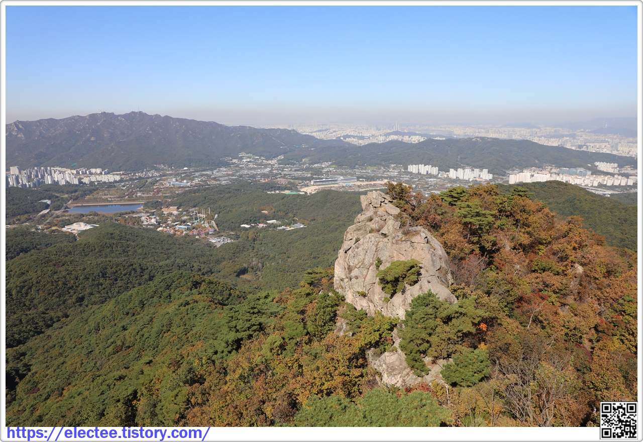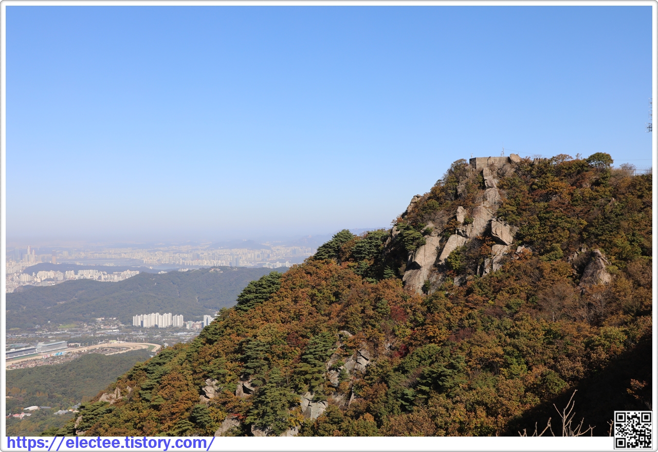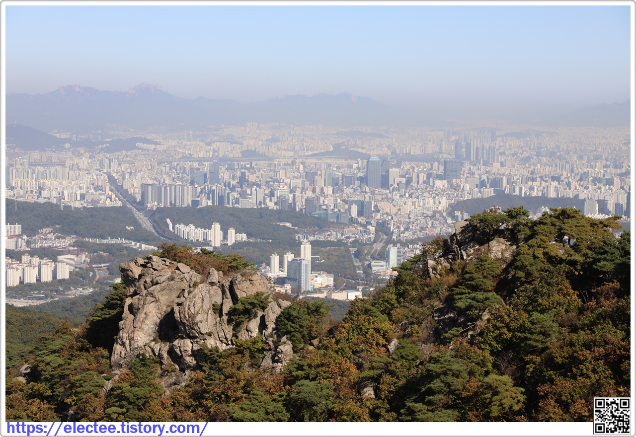 멀리 북한산 인수봉이 도드라지게 보인다.