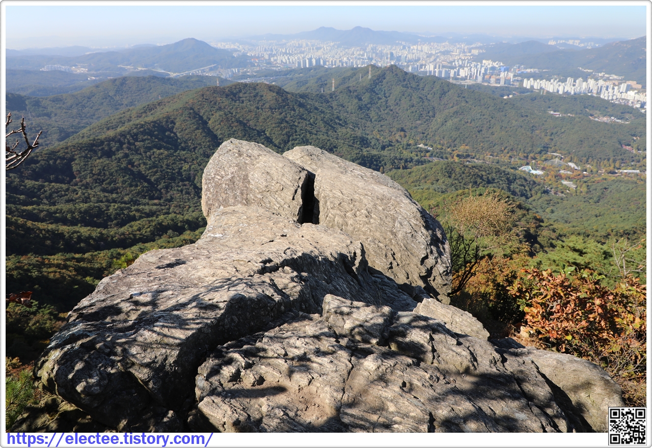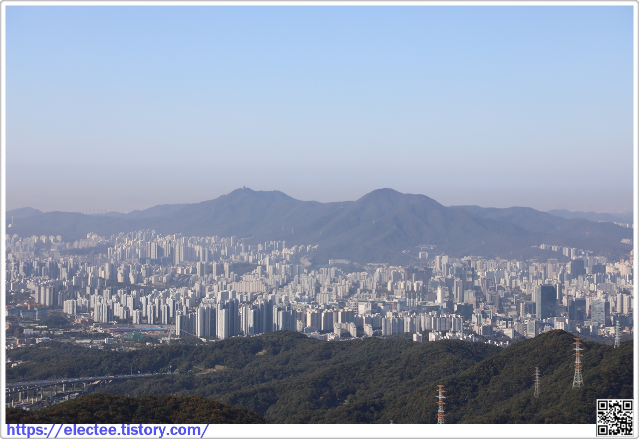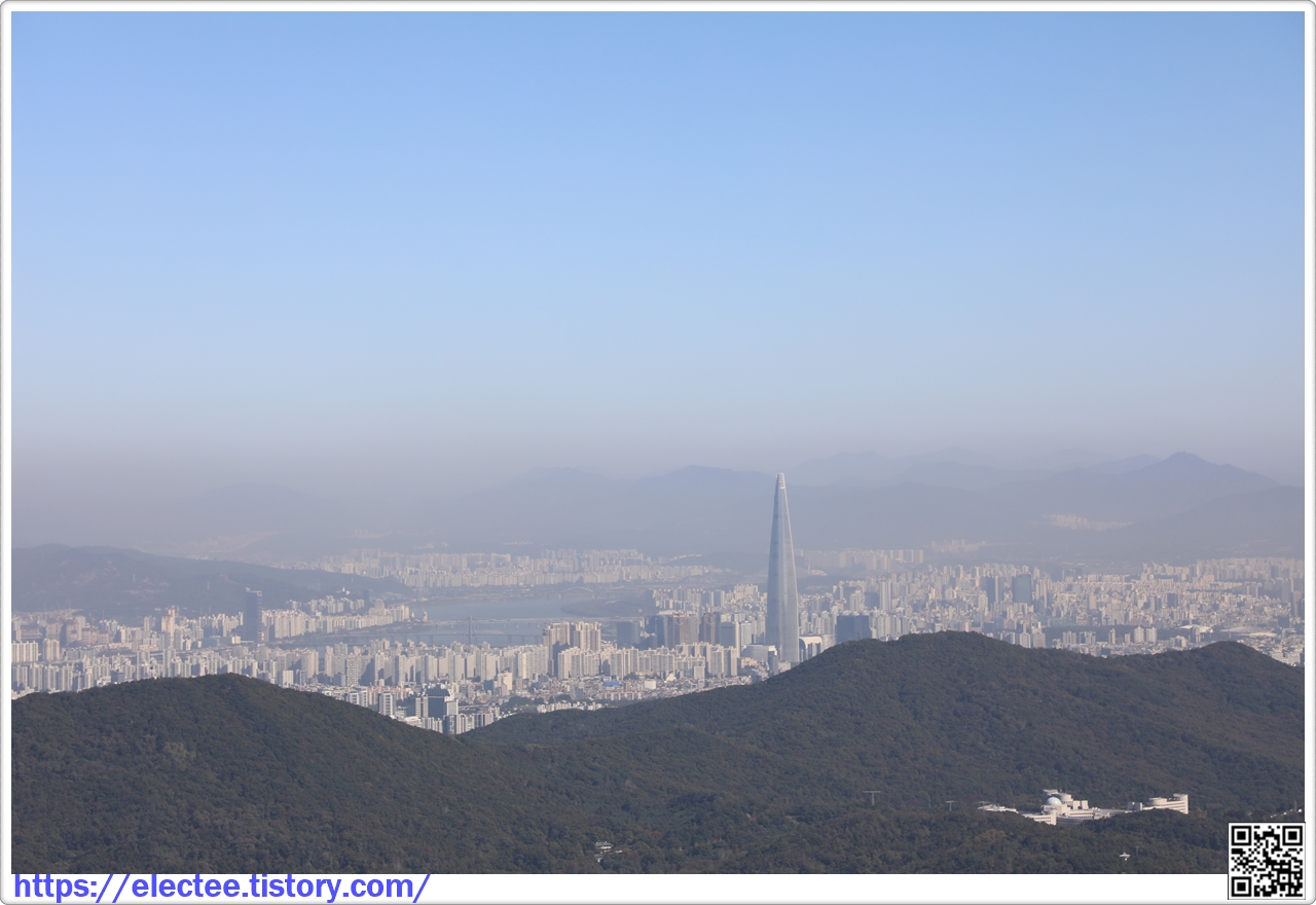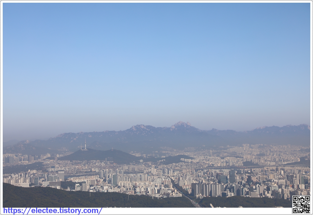 멀리 북한산 인수봉이 도드라지게 보인다.