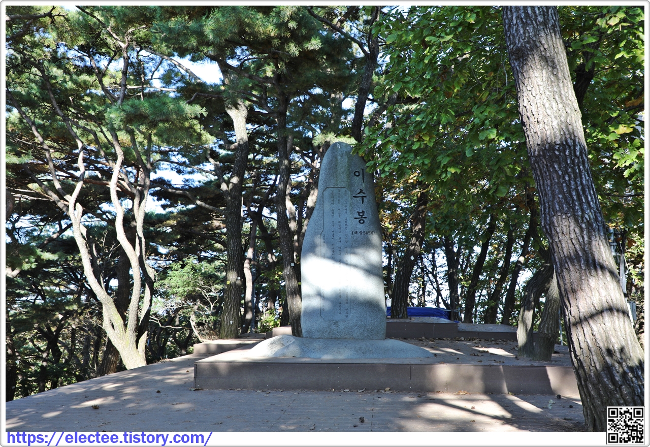 한때 이 산에 은거하며 생명의 위기를 두 번이나 넘겼다고 하여 후학인 정구 선생이 이수봉이라 명명하였다.