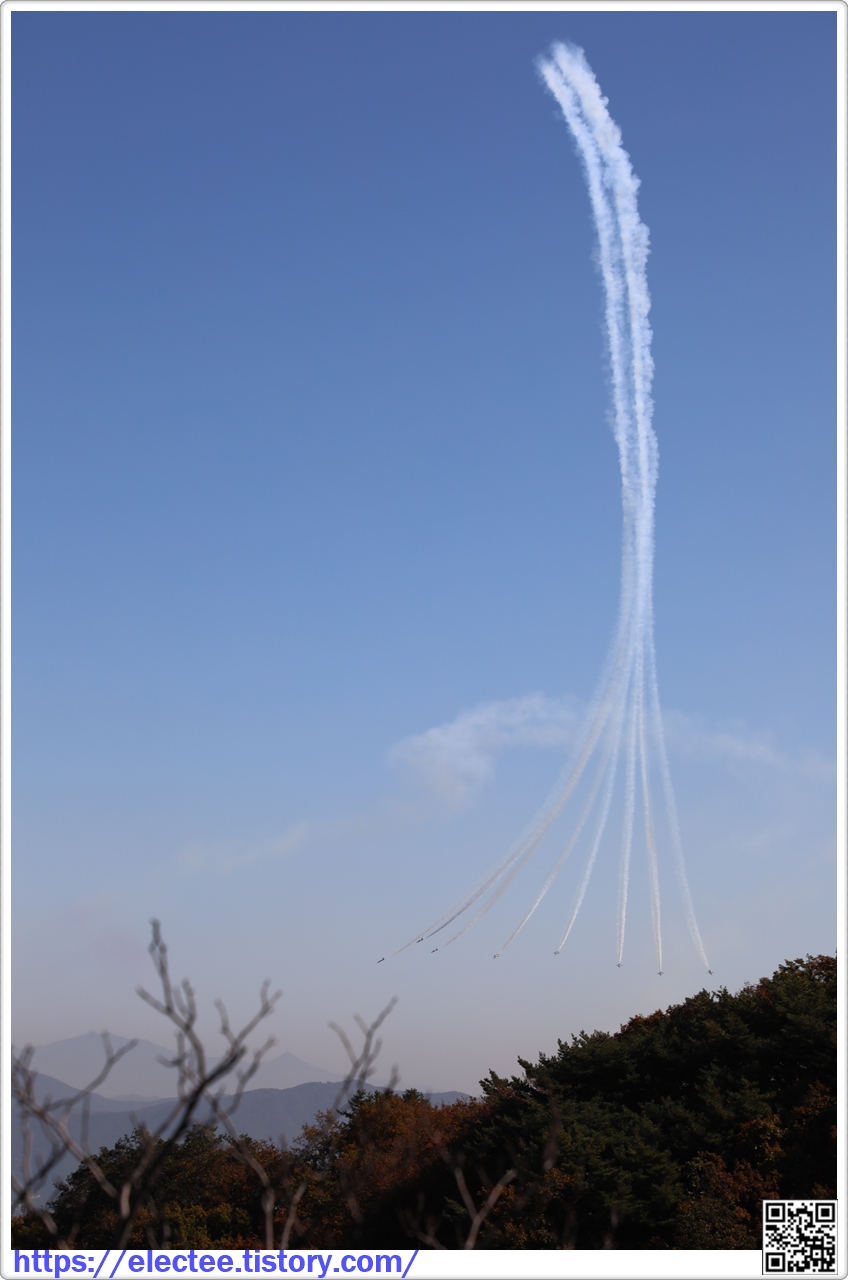 두 대의 비행기가 태극 마크를 그린 것인데, 이곳에서 정밀도가 떨어지지만