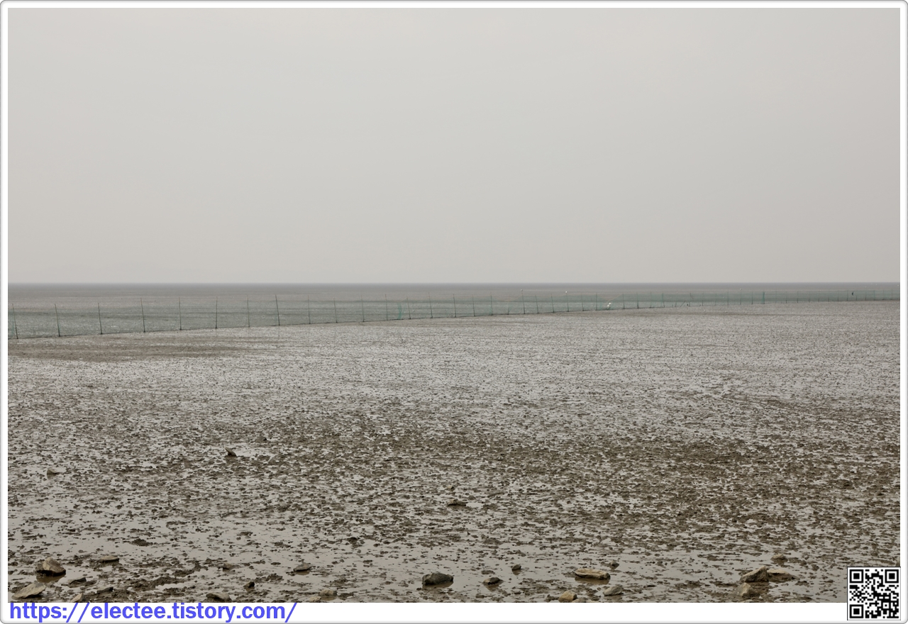 하루에 두 번 바닷물이 들어오고 나가니 썰물일 땐 이 갯벌로 들어올 수 없다.