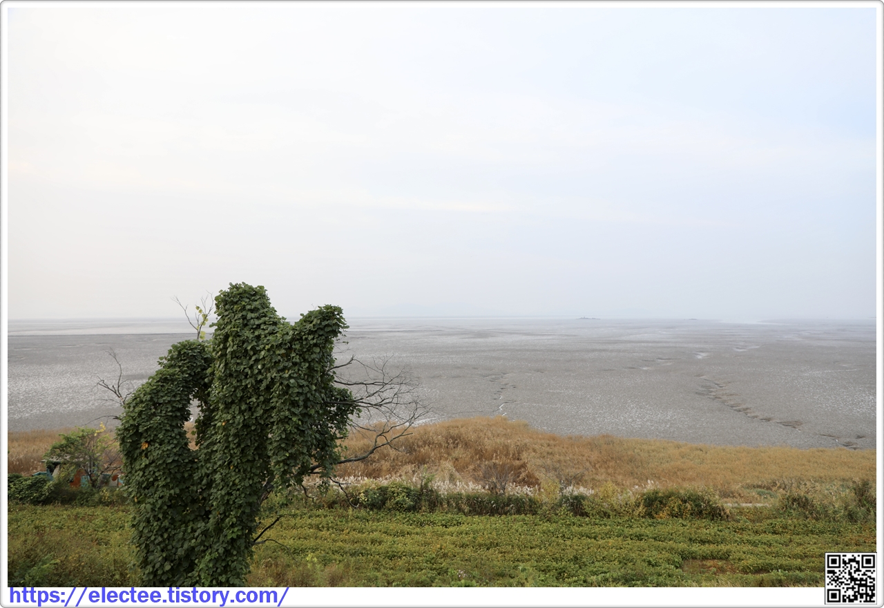 돈대 위로 올라가니 강화갯벌이 드러난 게 바닷물은 보이지도 않는다.