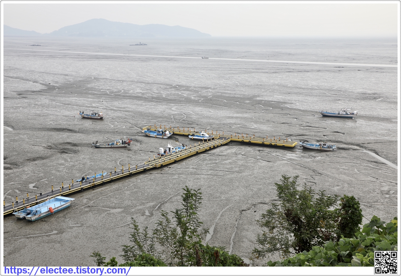 선박도 갯벌이 낮아 한참 바다로 나가 부교를 띄운 뒤 물이 차면 배를 타고 나갈 수 있다.
