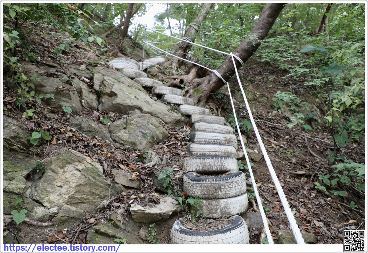 마을에서 올라가는 길은 이런 폐타이어를 이용해 계단을 만든 걸 보면 군인들 초소로 가는 길이겠단 생각이 든다.