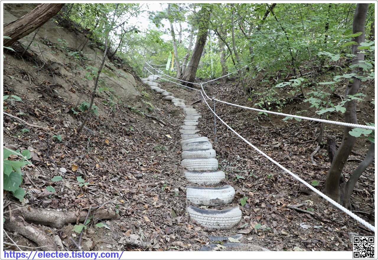 제법 길게 이어지는 폐타이어 계단길은 강화나들길이기도 하다.