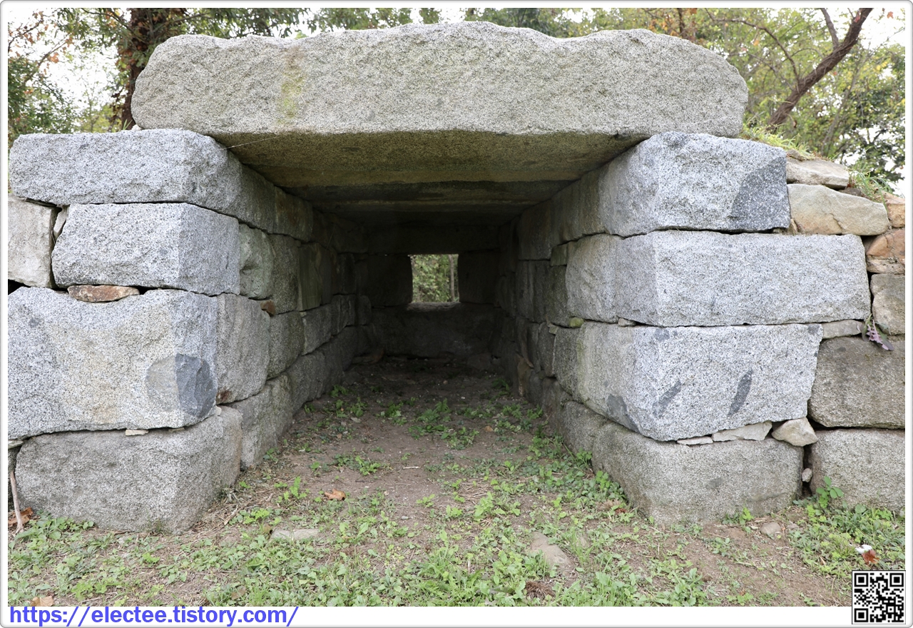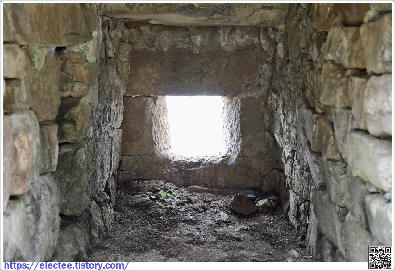 한쪽이 홍예문인 출입구는 문을 닫을 수 있게 돌확석이 설치되었는데,