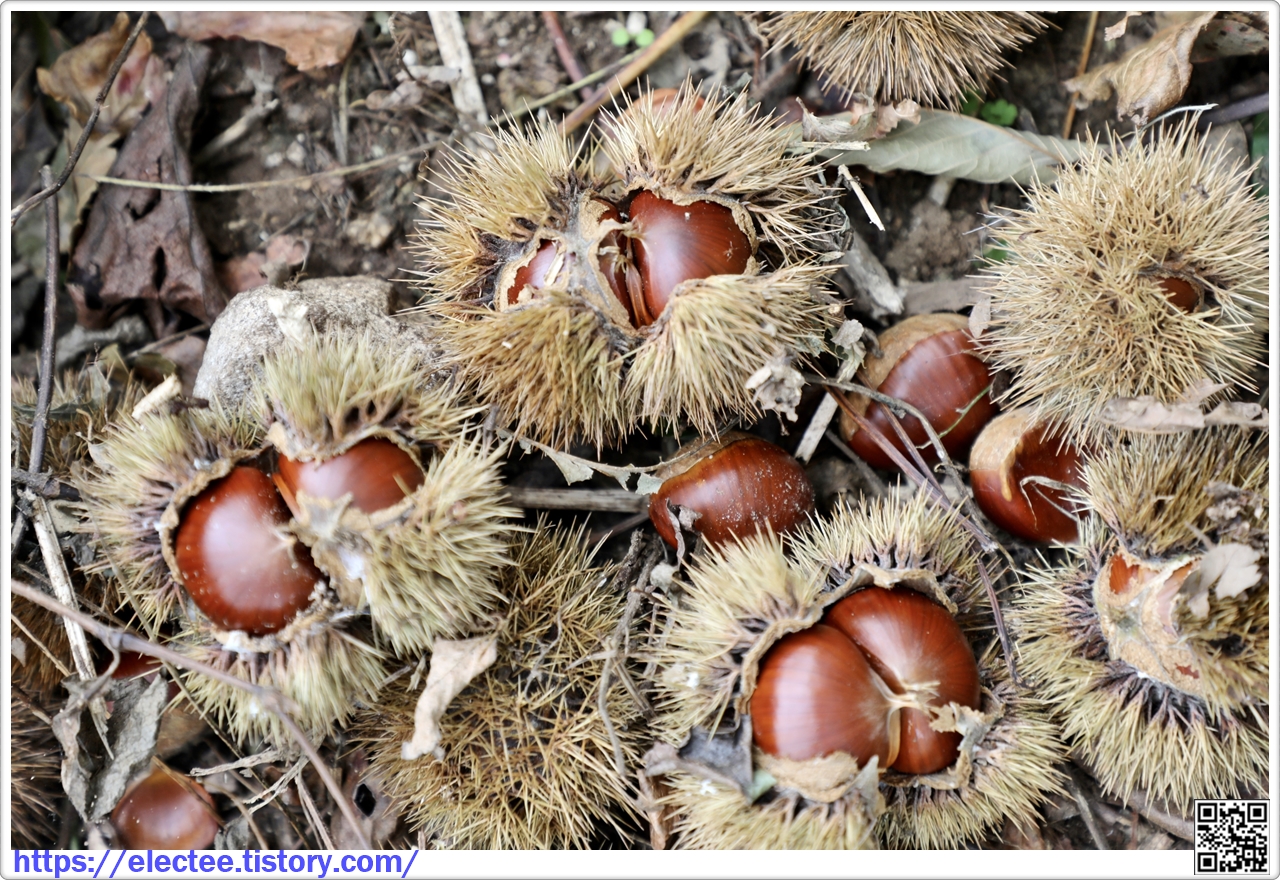 주인이 밤 수확을 포기한 건지 알알이 든 밤송이에 밤이 그득하다.