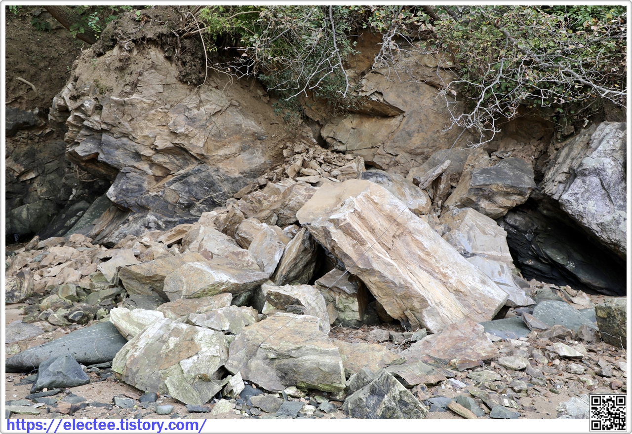 엊그제 파도가 밀고 가더니 그 힘에 맥없이 무너진 바위