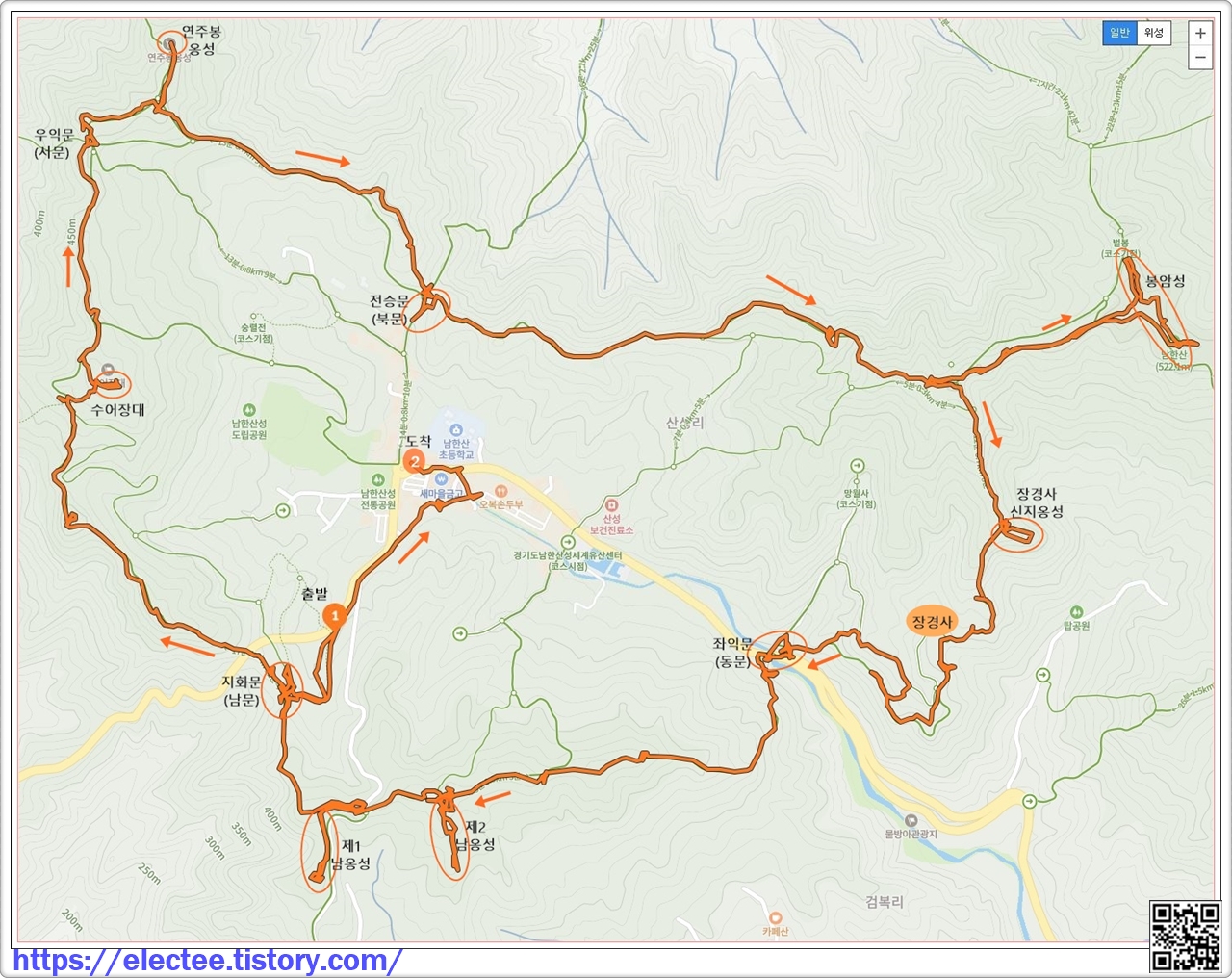 남한산성 세계유산센터에서 제시하는 5코스는 동문부터 시계방향으로 한 바퀴 도는 것이다.
