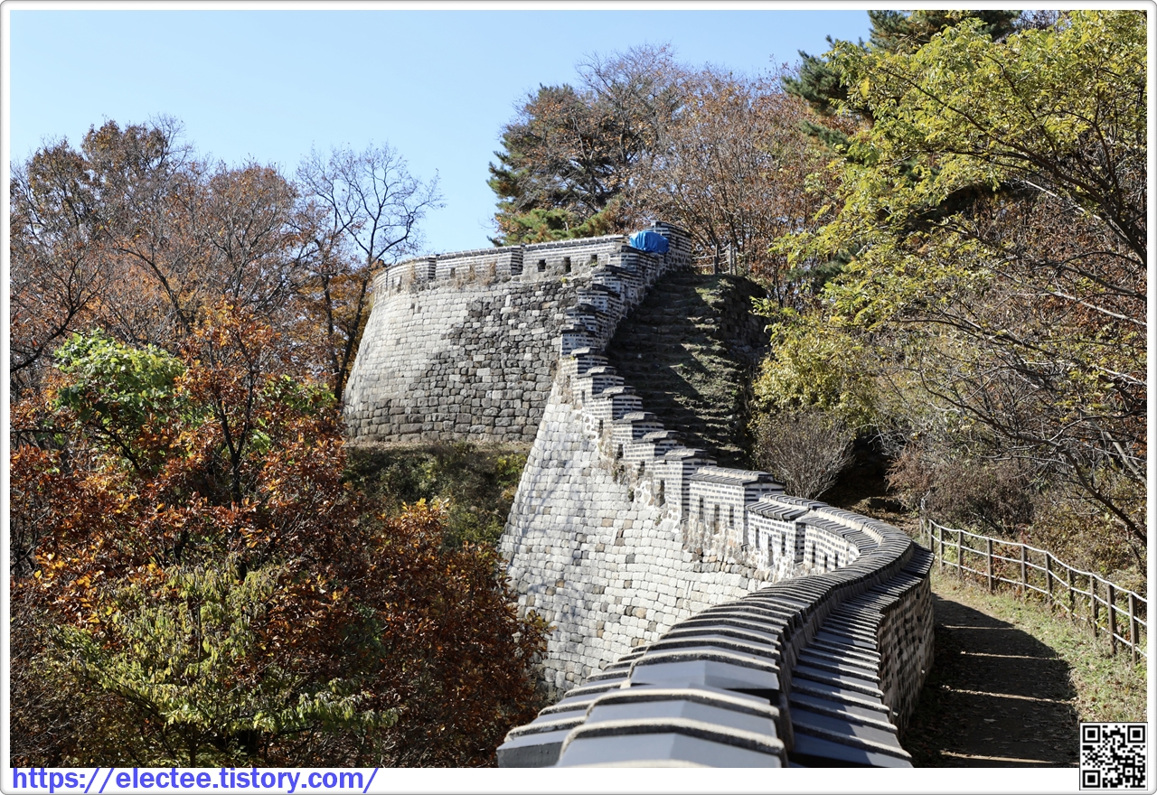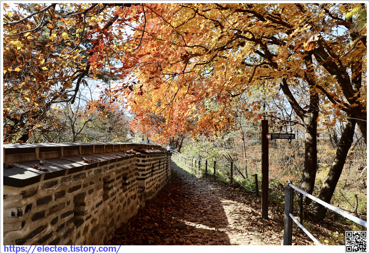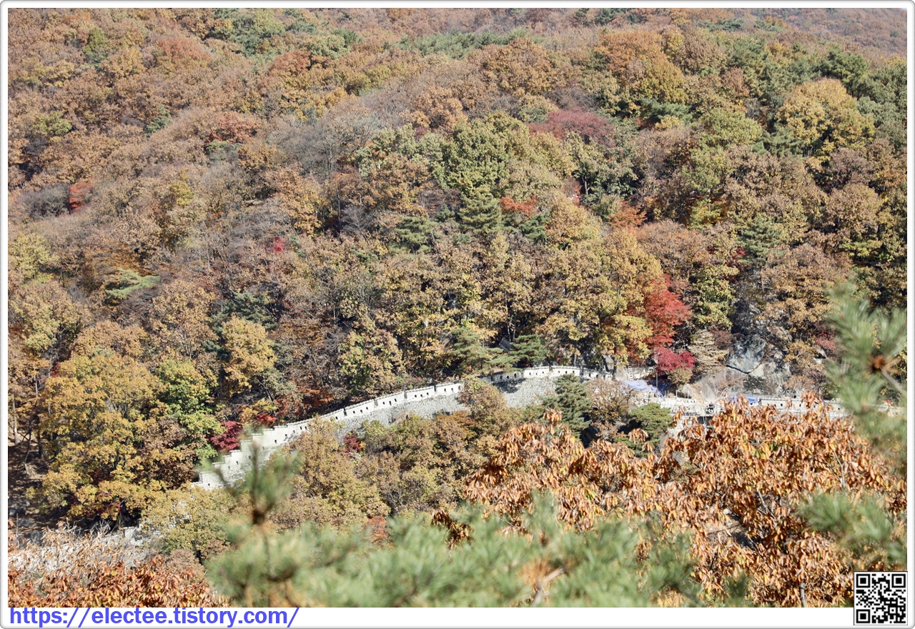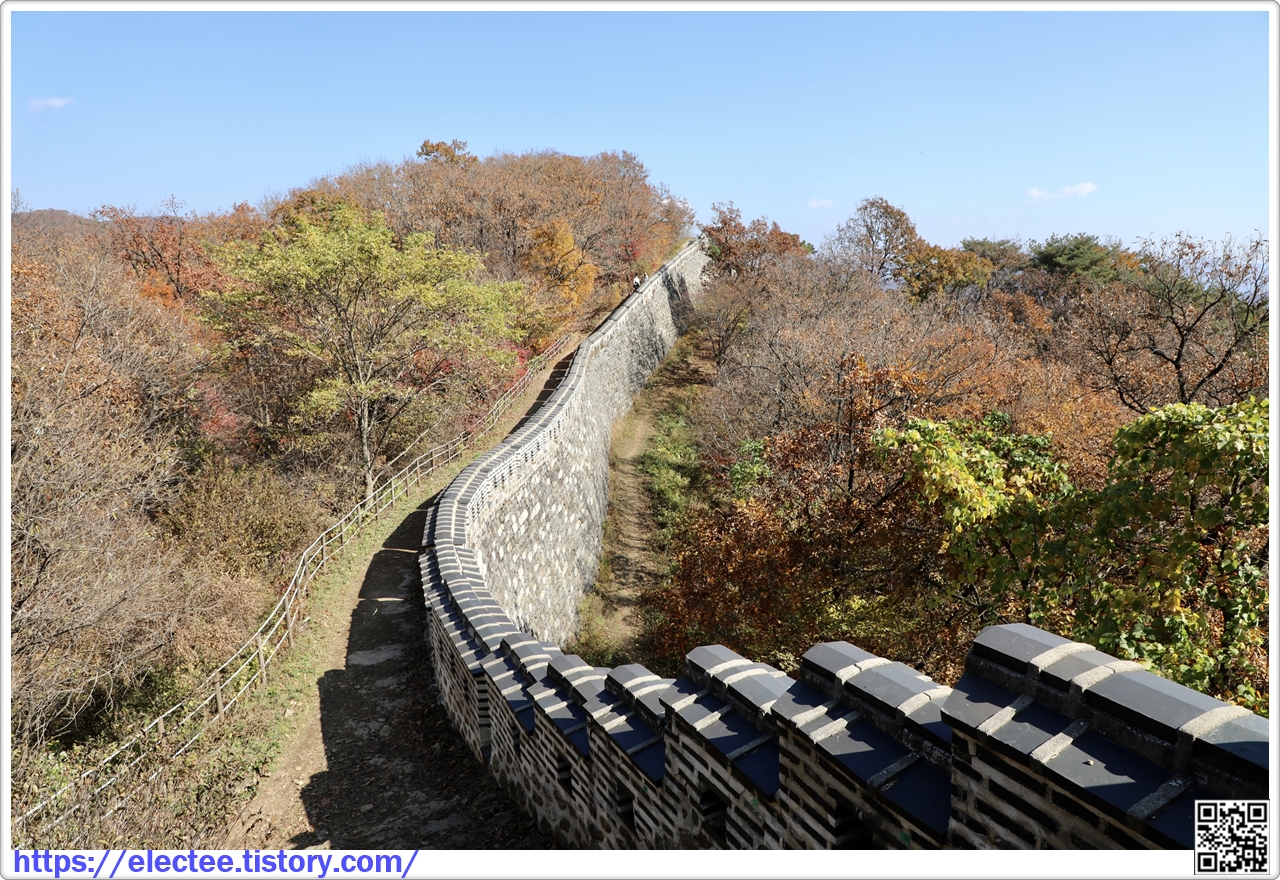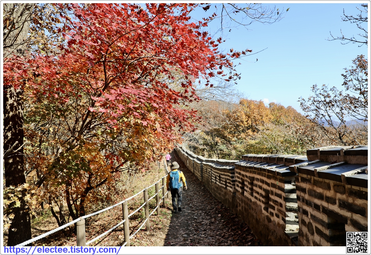 2023_174 B 2023. 10. 29. (일) 07:45~14:10, 6시간 25분 산행, 휴식 1시간 포함, 14.6km 이동 남한산성도 수도권에선 단풍이 아름답기로 제법 소문난 지역이다. 앞서 남문에서 시계 방향으로 전승문까지 왔을