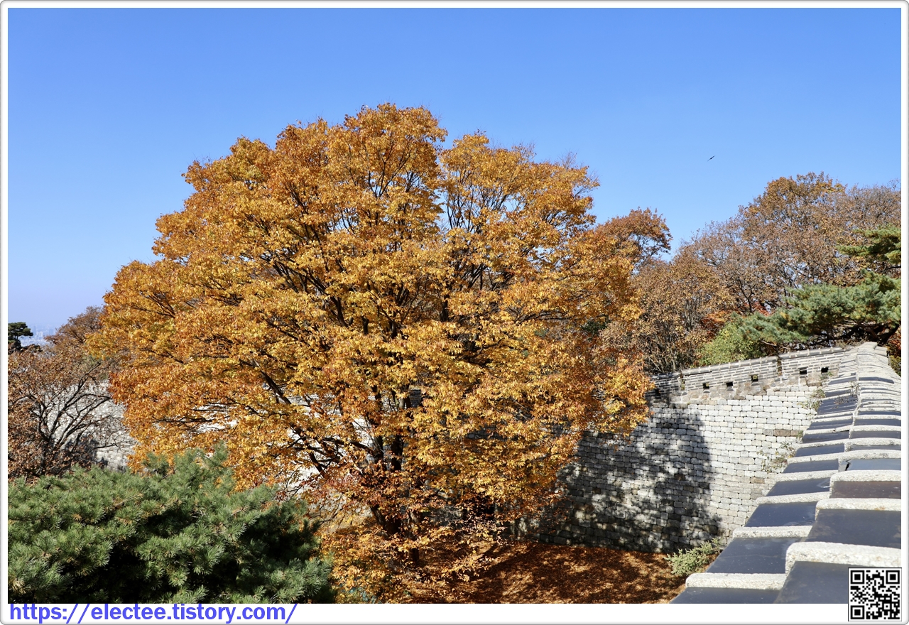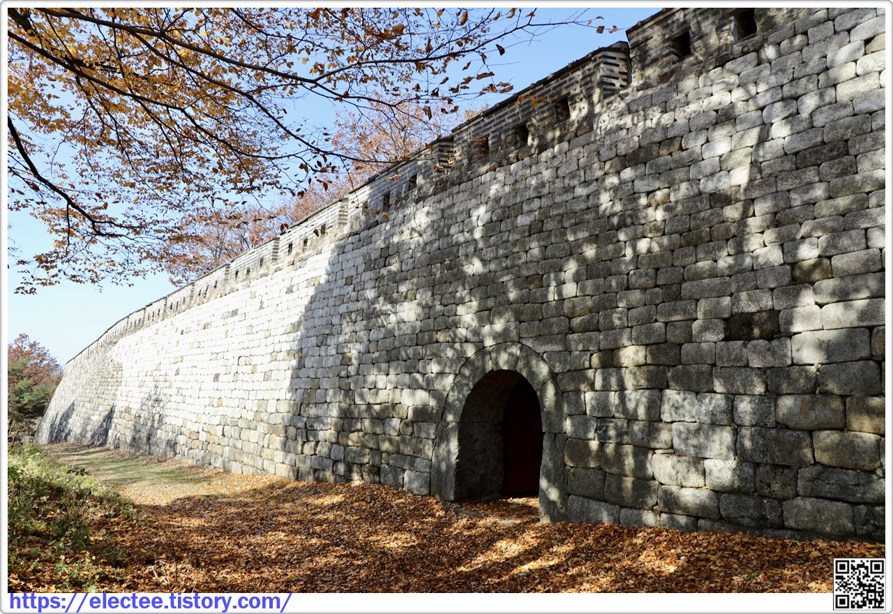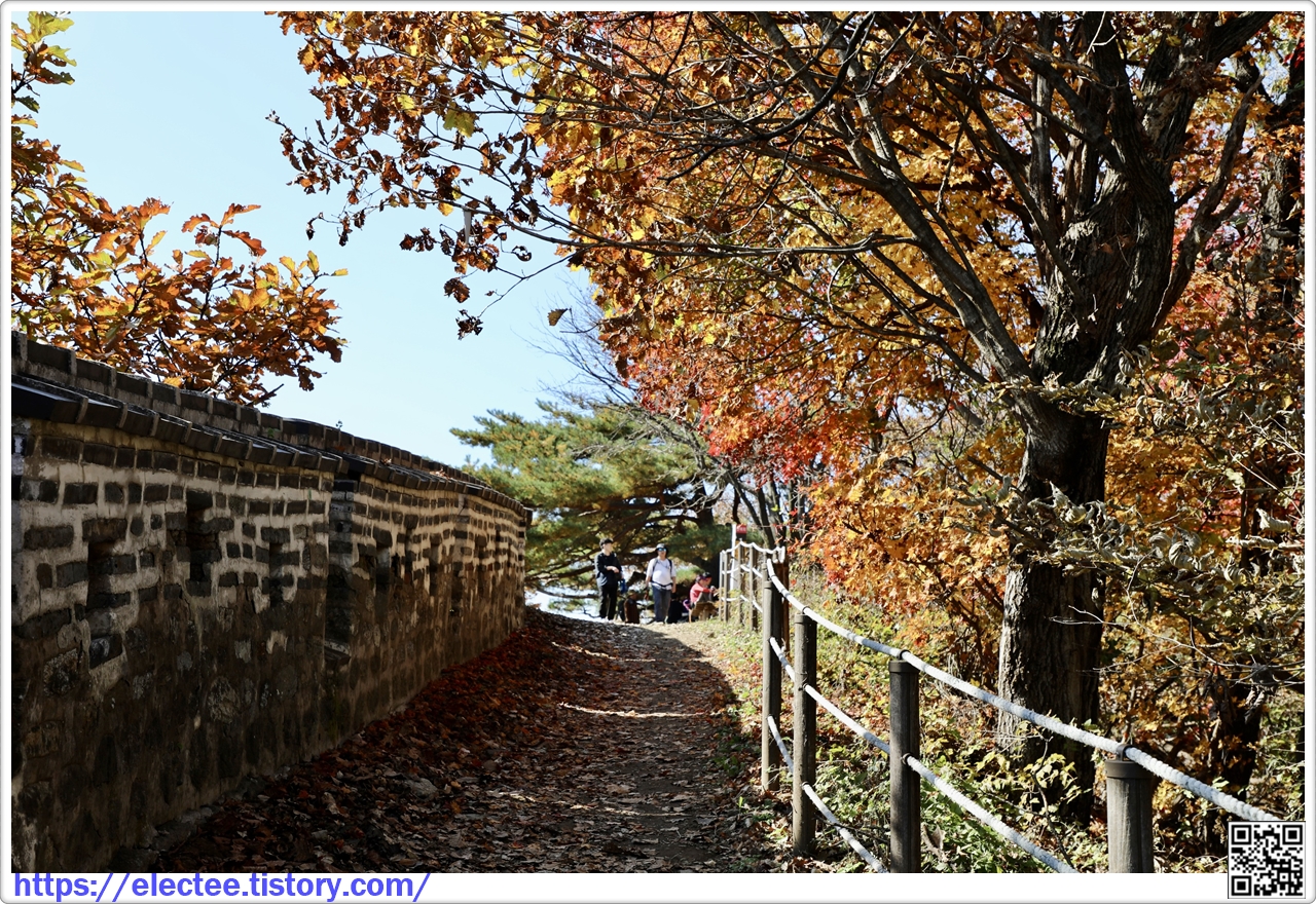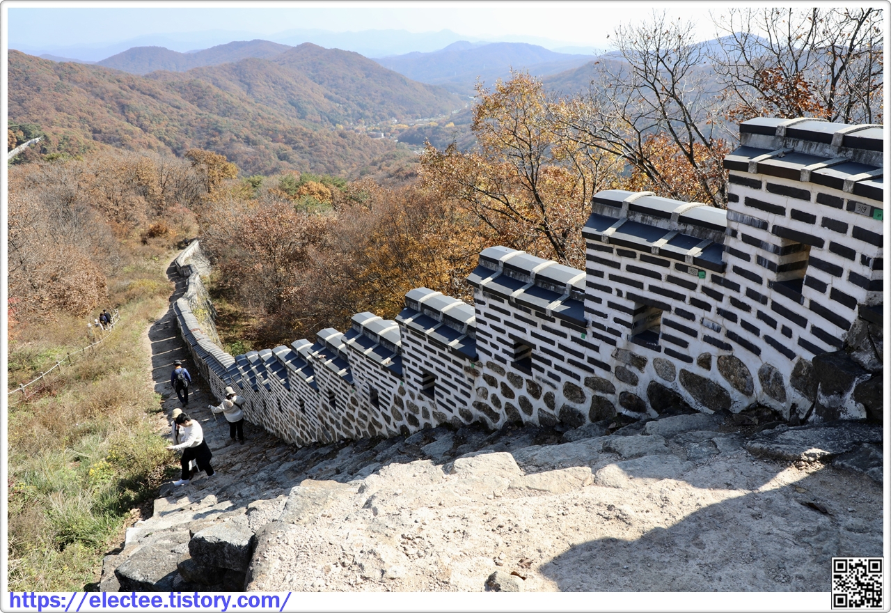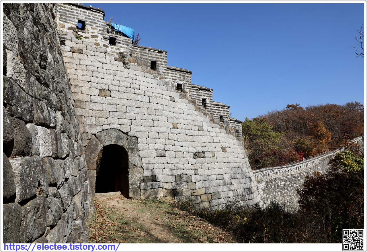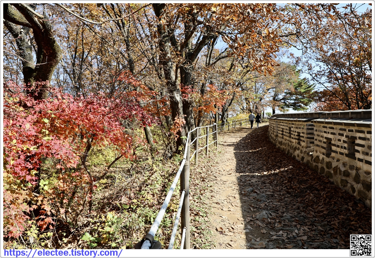 2023_174 B 2023. 10. 29. (일) 07:45~14:10, 6시간 25분 산행, 휴식 1시간 포함, 14.6km 이동 남한산성도 수도권에선 단풍이 아름답기로 제법 소문난 지역이다. 앞서 남문에서 시계 방향으로 전승문까지 왔을