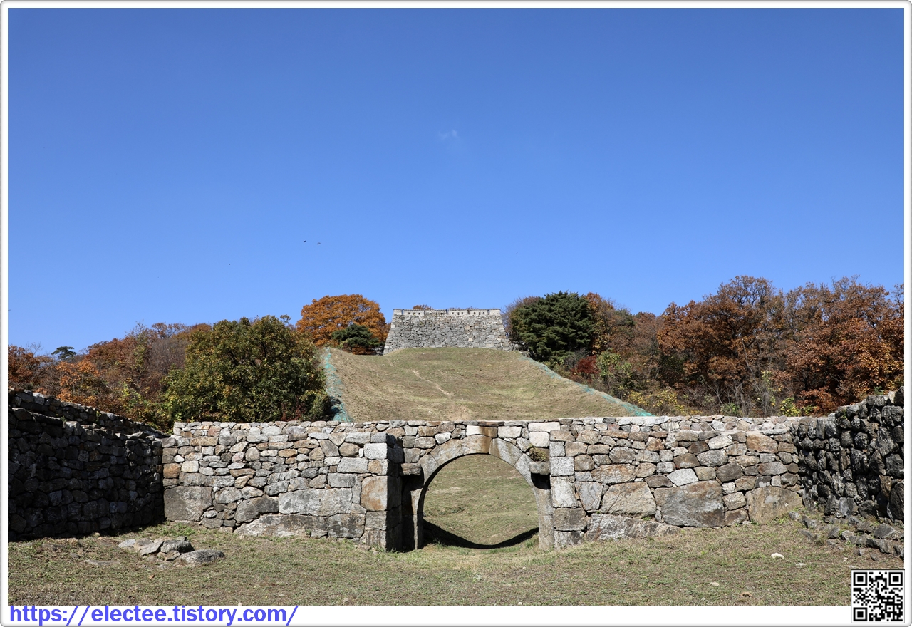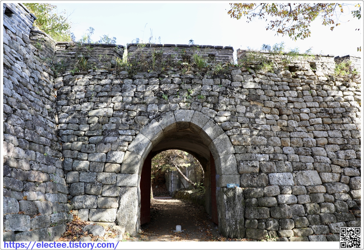 옹성의 돈대로 들어가는 아치형 홍예문이 햇살을 받아 그림자 진 성벽과 대비되어 더 인상적이다.