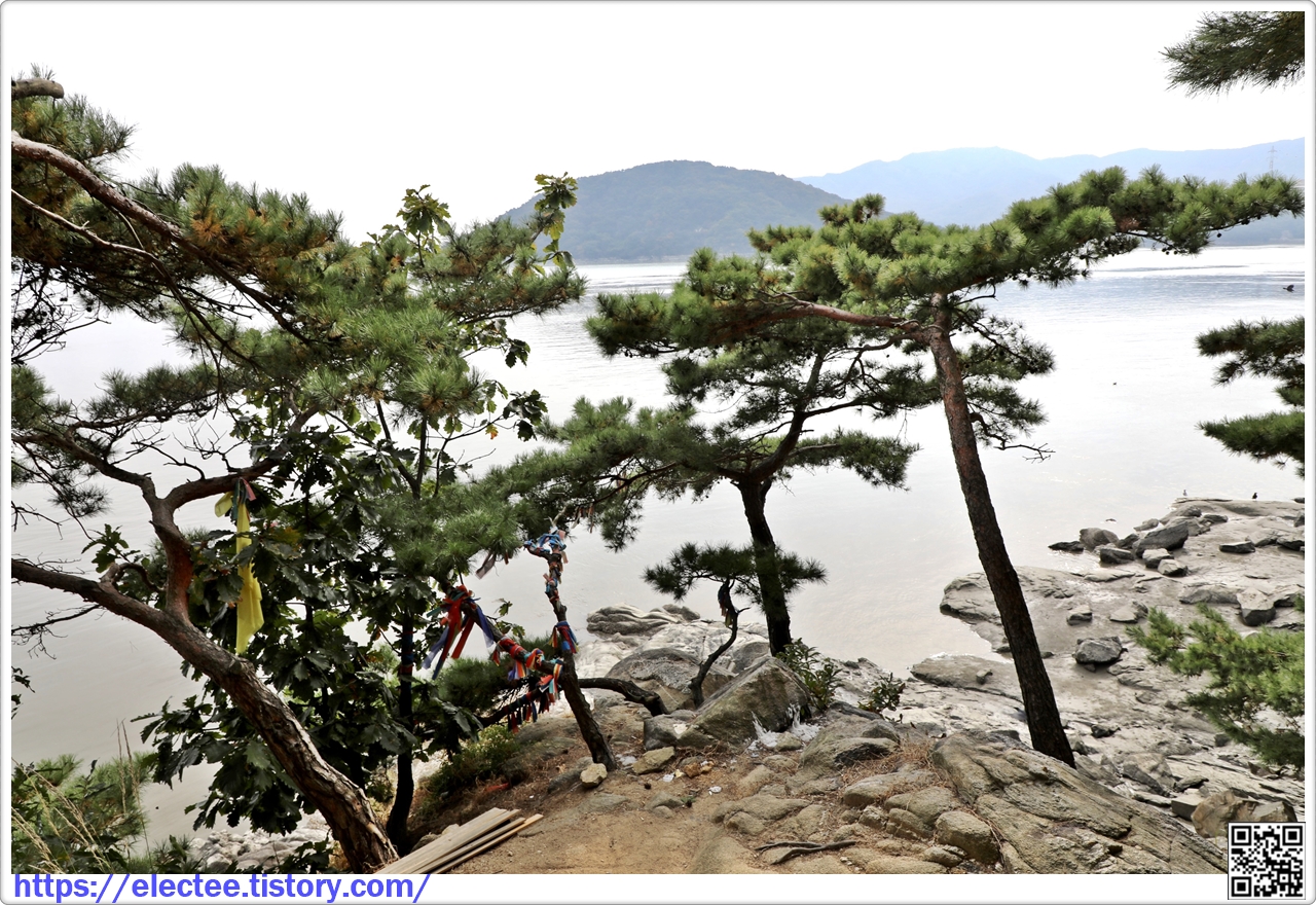선착장 오른편의 얕은 산 아래에 있다.