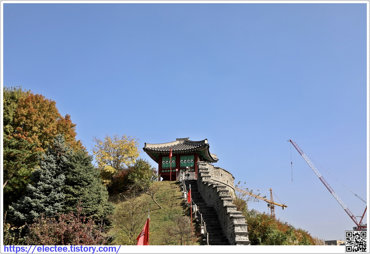 The Southeastern Corner Pavilion, located on a high hill next to Suwoncheon Stream, is an optimal place to