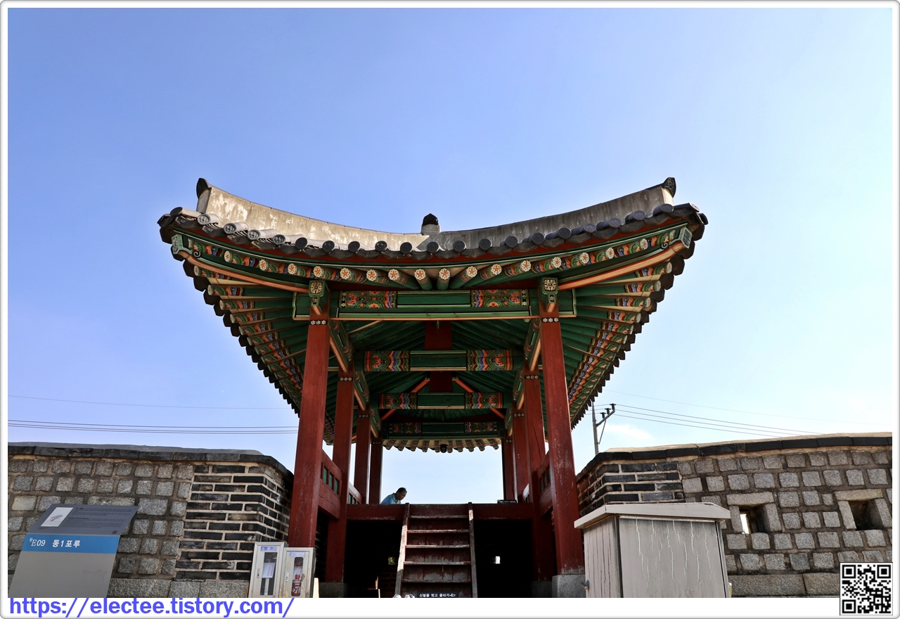 동1포루는 창룡문 남쪽에 있는 치성 위에 군사들이 머물 수 있도록 누각을 지은 시설이다.