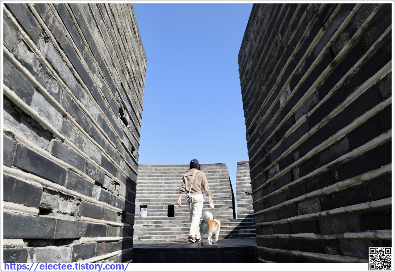 옹성은 서울의 흥인지문처럼 한쪽 모서리를 열어둔 형태다.