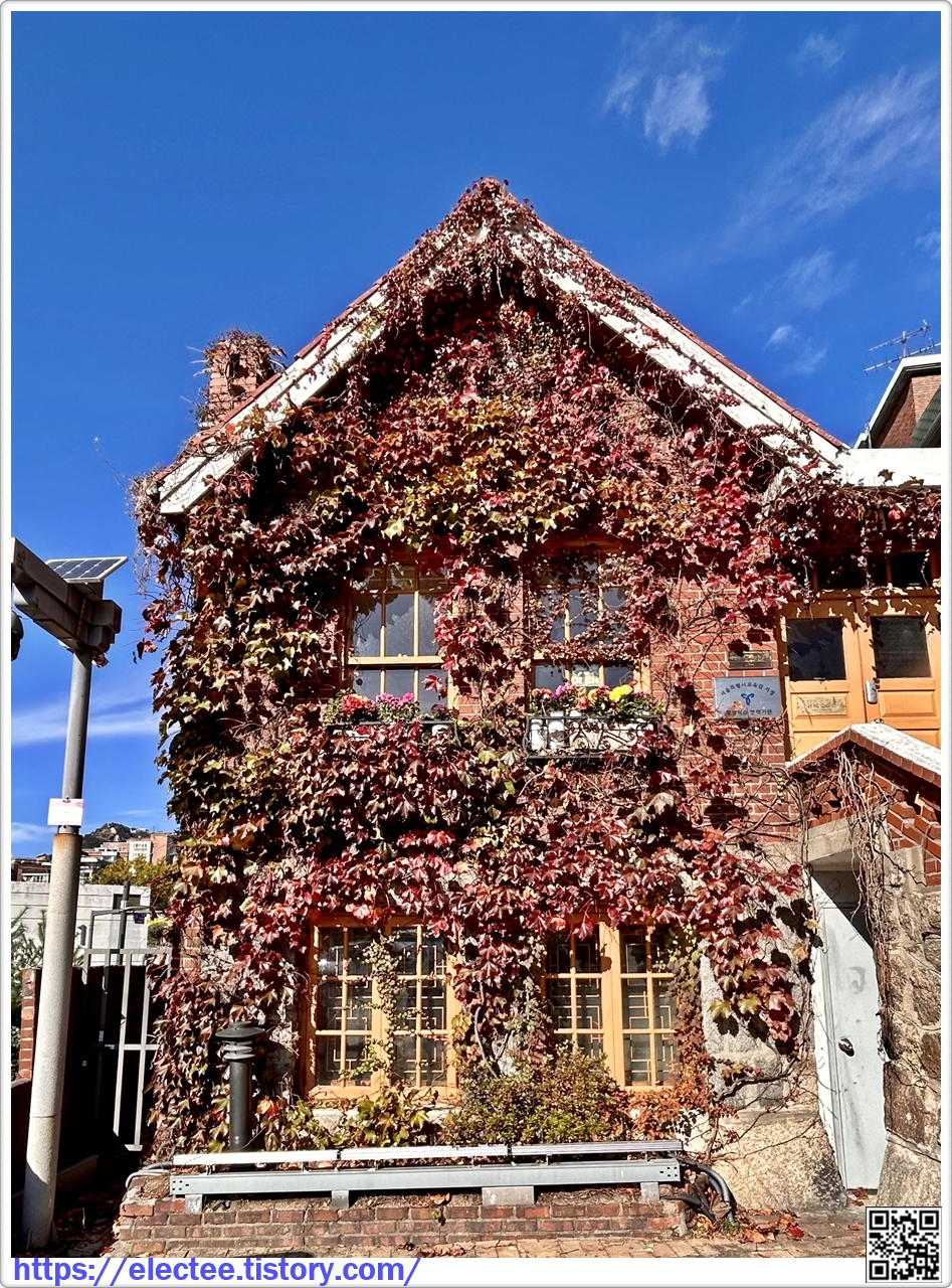 홍난파 가옥이다. 푸르던 담쟁이넝쿨도 붉은 외벽이나 지붕색과 동화되어 같이 늙어 간다.