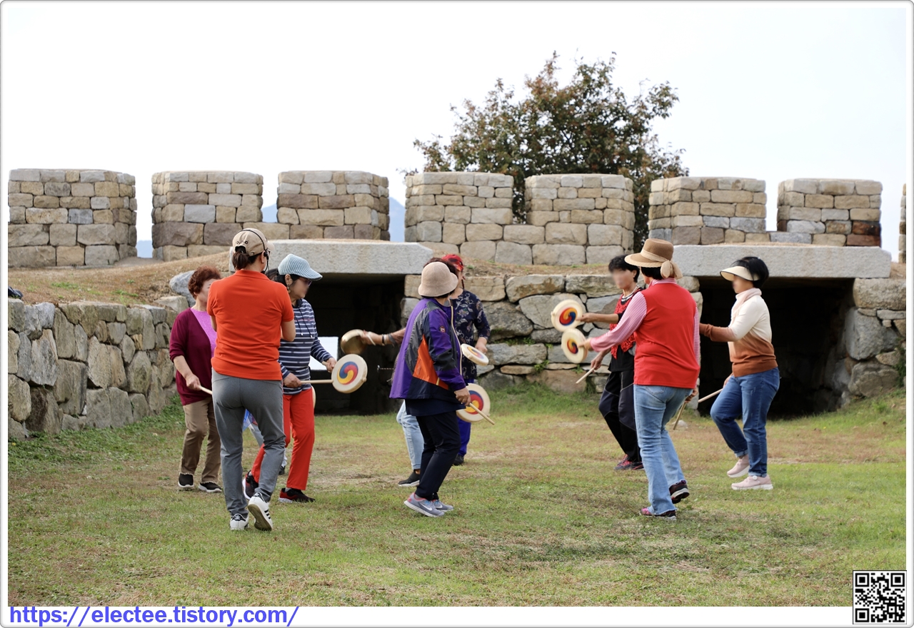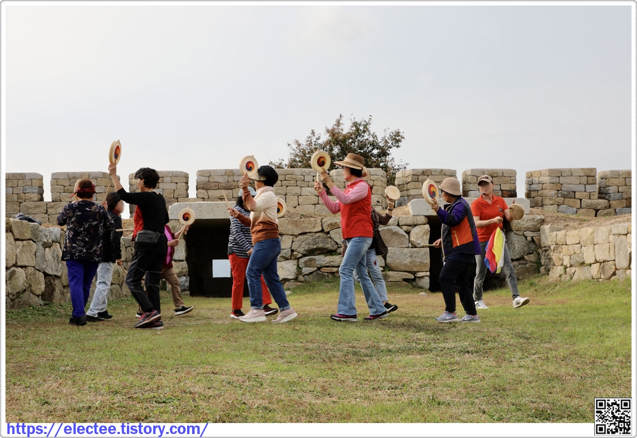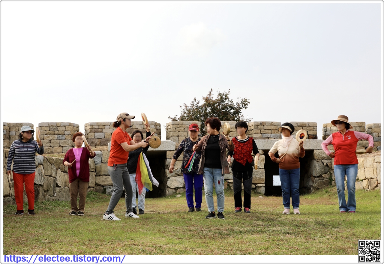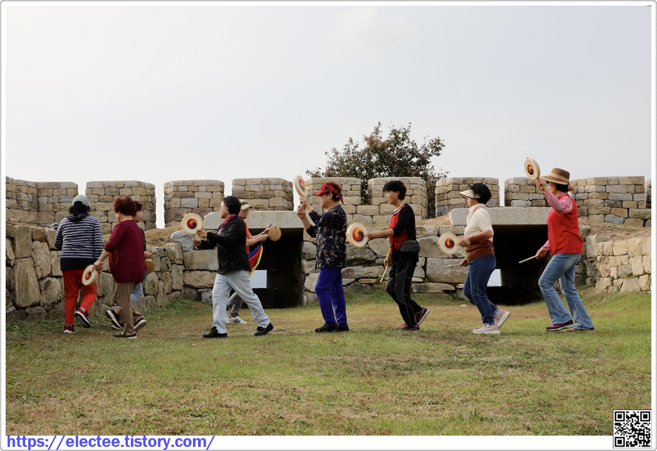 계룡돈대로 들어서니 아주머니들은 농악놀이를 하고 남정네들은 서너 명씩 모여 구경하고 있다.