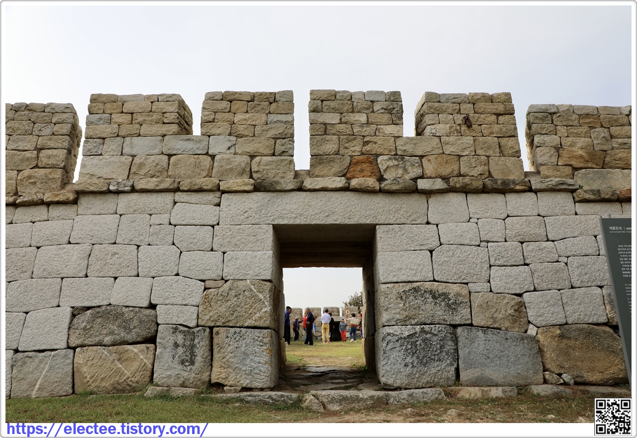 Gyeryongdondae has three artillery emplacements. Its stone walls form a rectangle, measuring 30 m by 20 m.