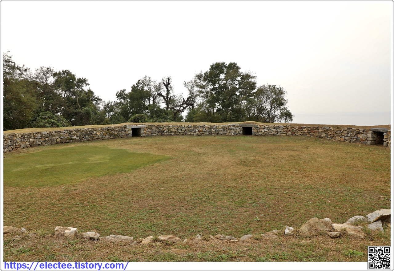 네모난 돌을 3m 높이의 원형으로 쌓은 후 그 위에 낮은 담을 설치했던 흔적과 해안을 향해 대포를 올려놓는