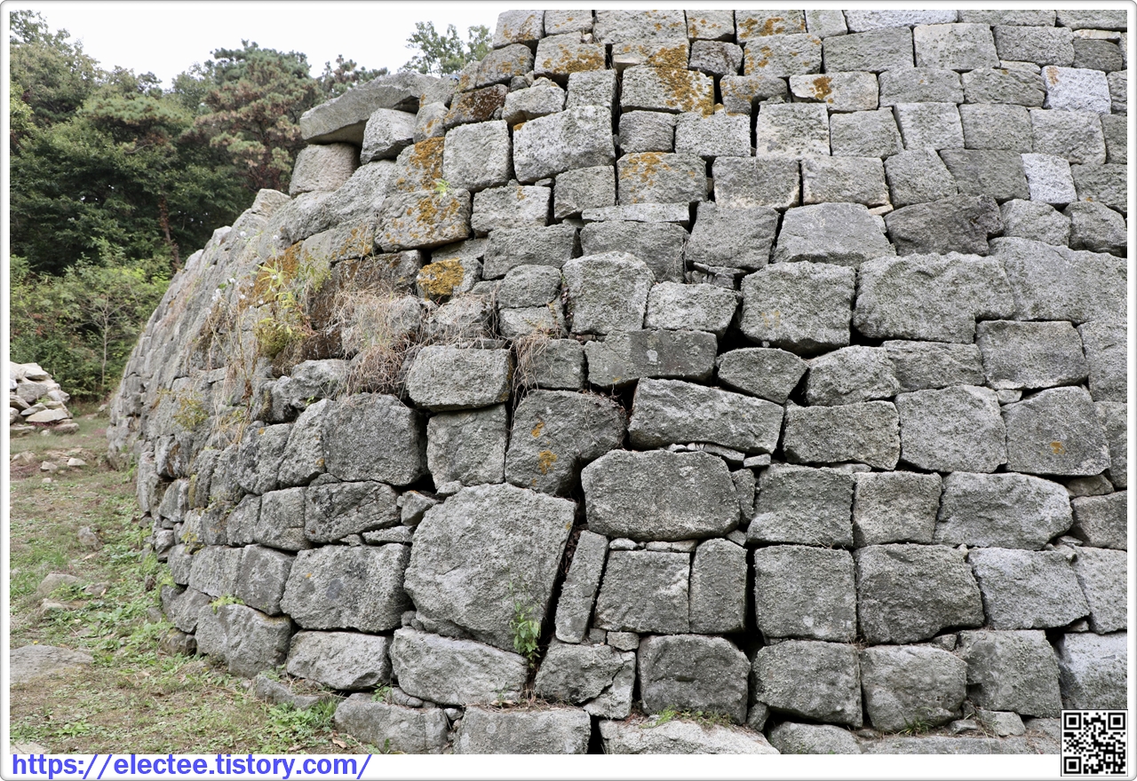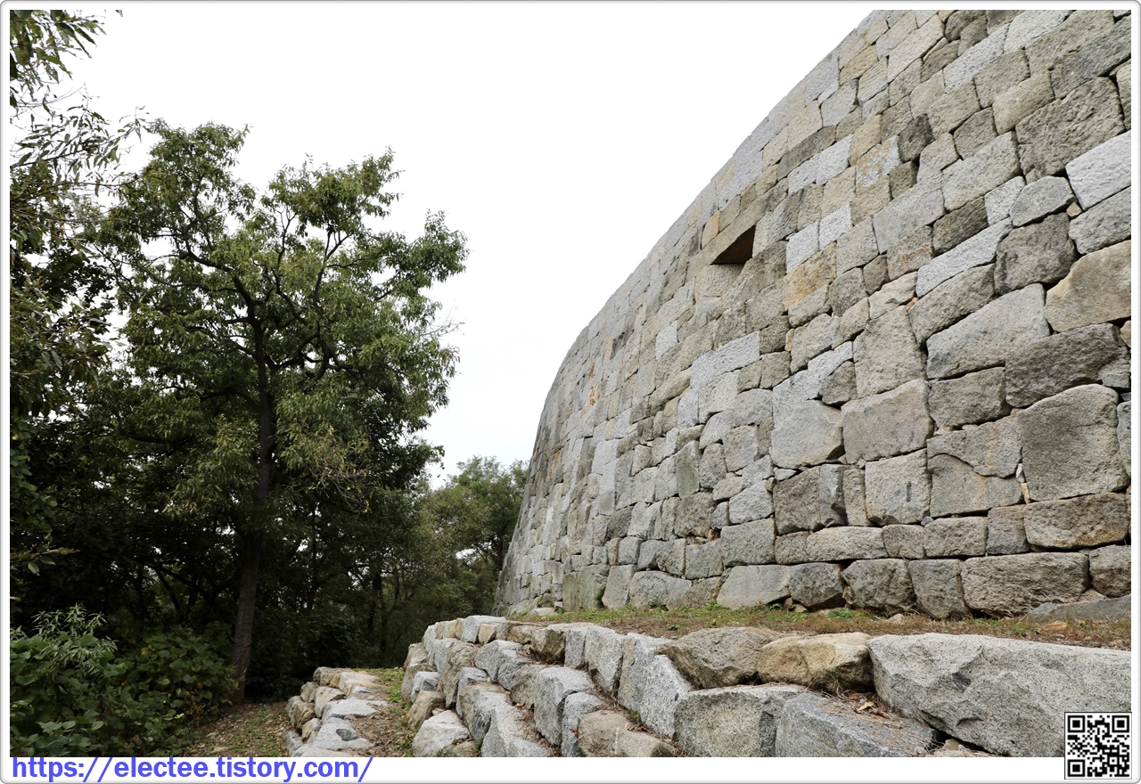 안쪽은 각이 진 형태로 쌓고, 밖은 타원형으로 돌려 더 견고한 느낌을 준다.