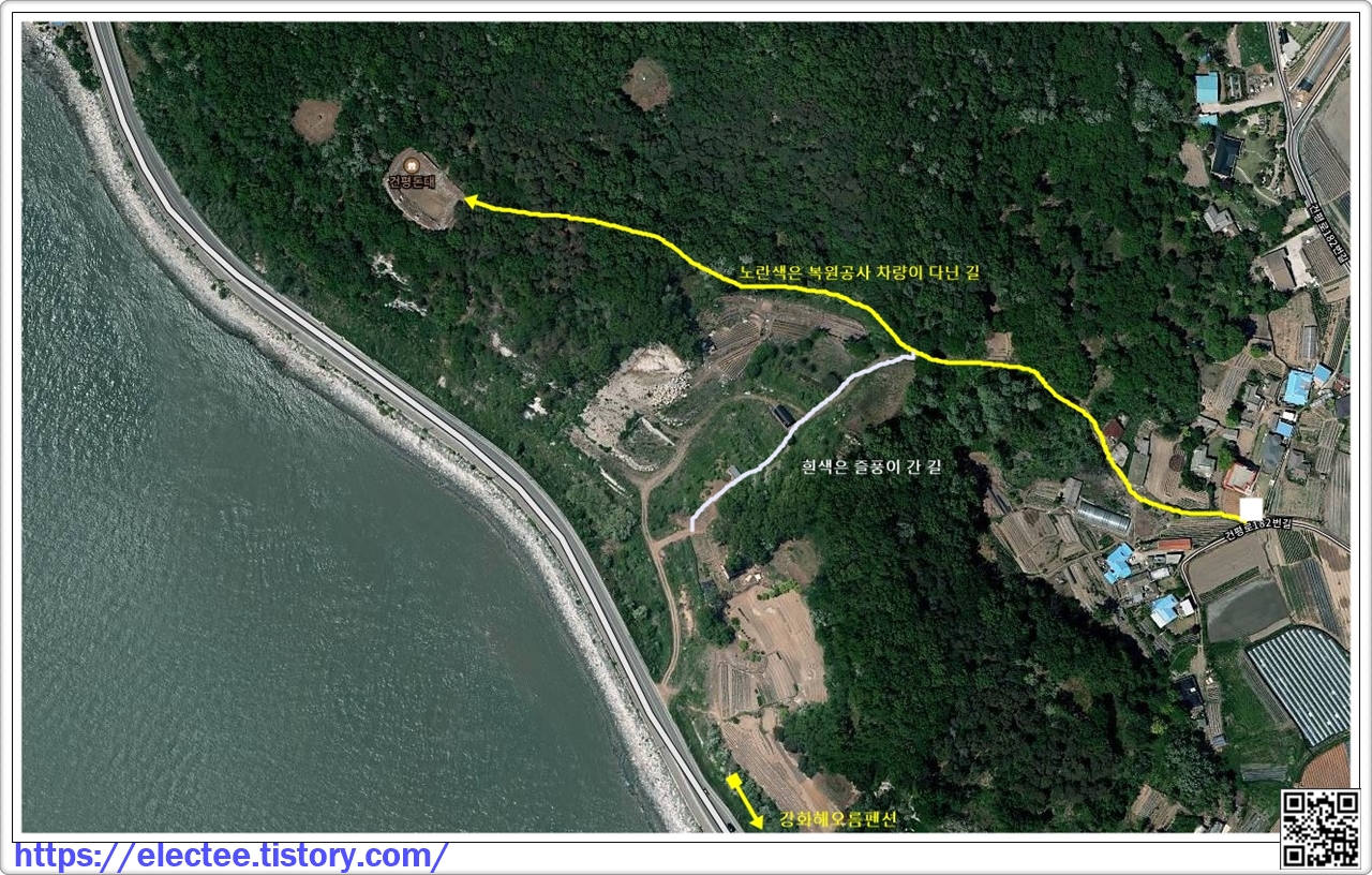 굳이 건평돈대를 찾을 일이 있거든 아래 지도의 노란선을 이용하는 게 좋다.
