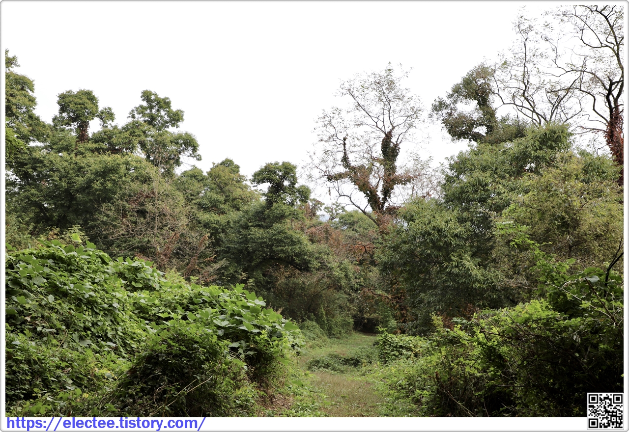 한참을 들어간 뒤에야 예전에 건평돈대를 복원할 때 만든 임도를 만나 겨우 찾아갔다.