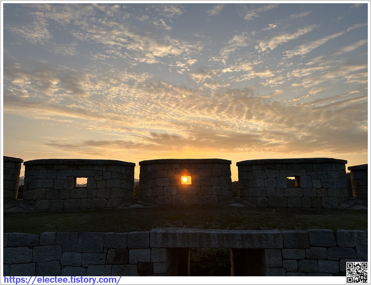 얼른 서쪽 돈대 방향으로 뛰어가 폰으로 돈대의 여장인 총안으로 들어간 태양을 잡아본다.