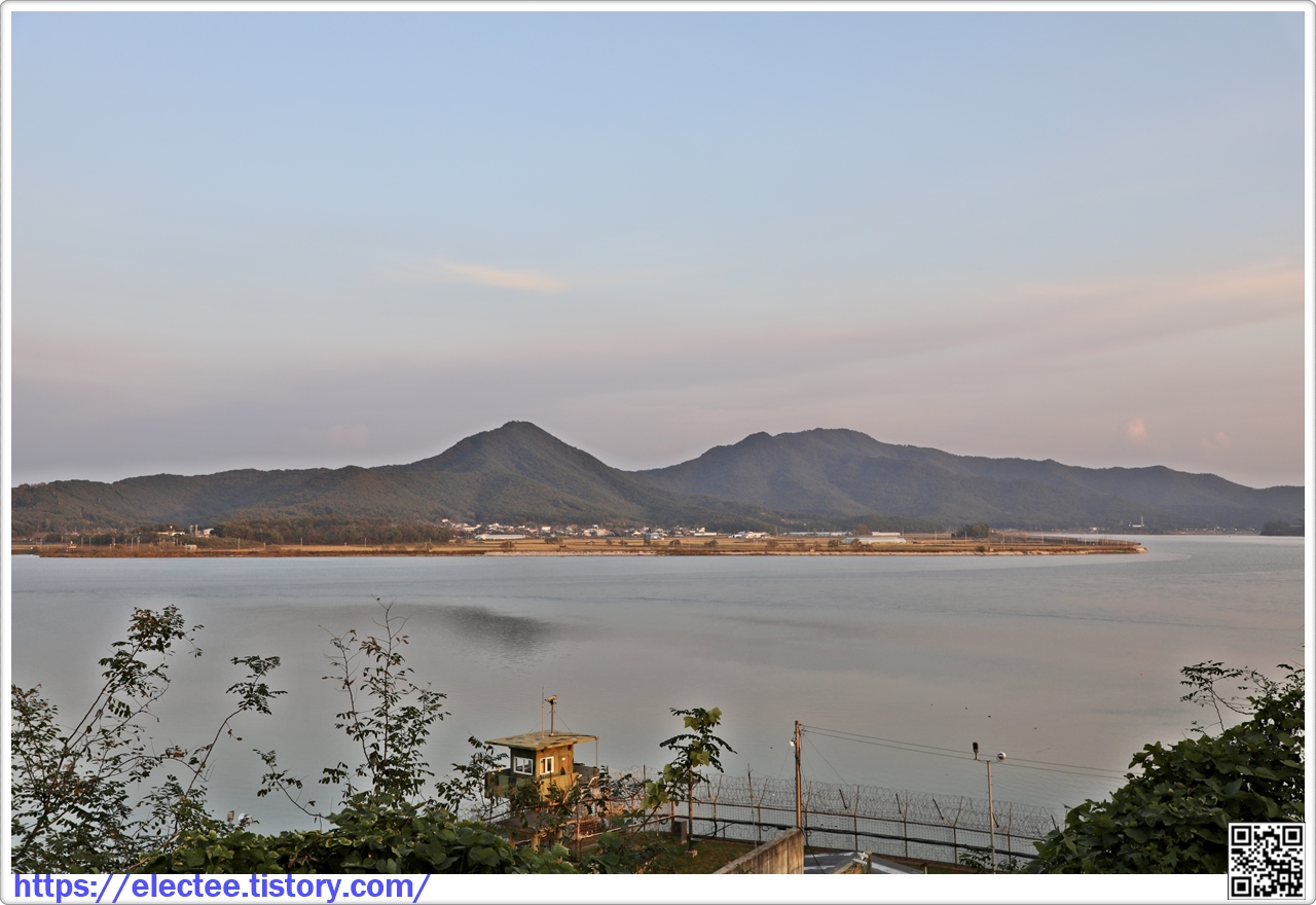예전 군인 초소 뒤로 보이는 건 염하(鹽河)라고 한다.